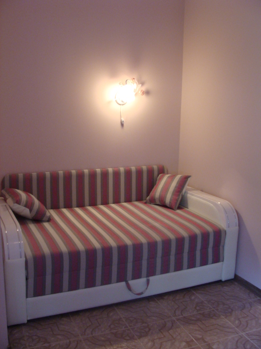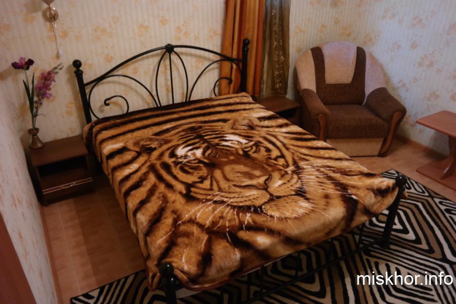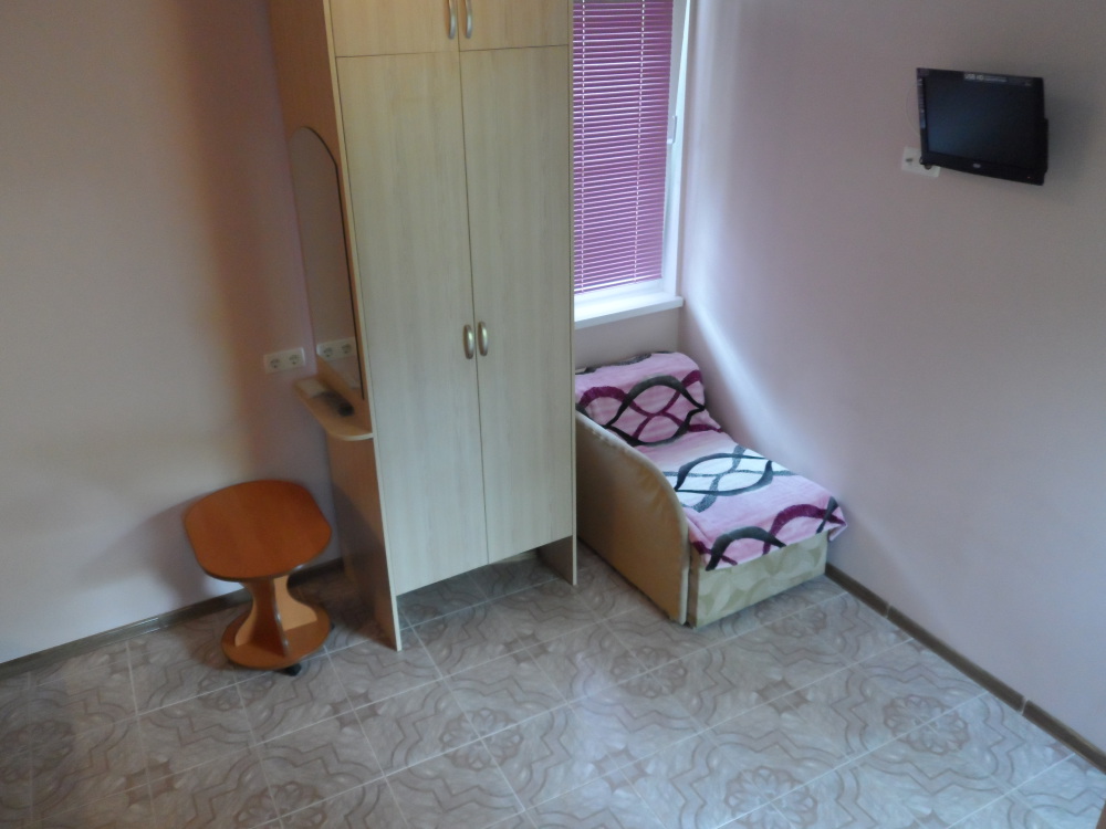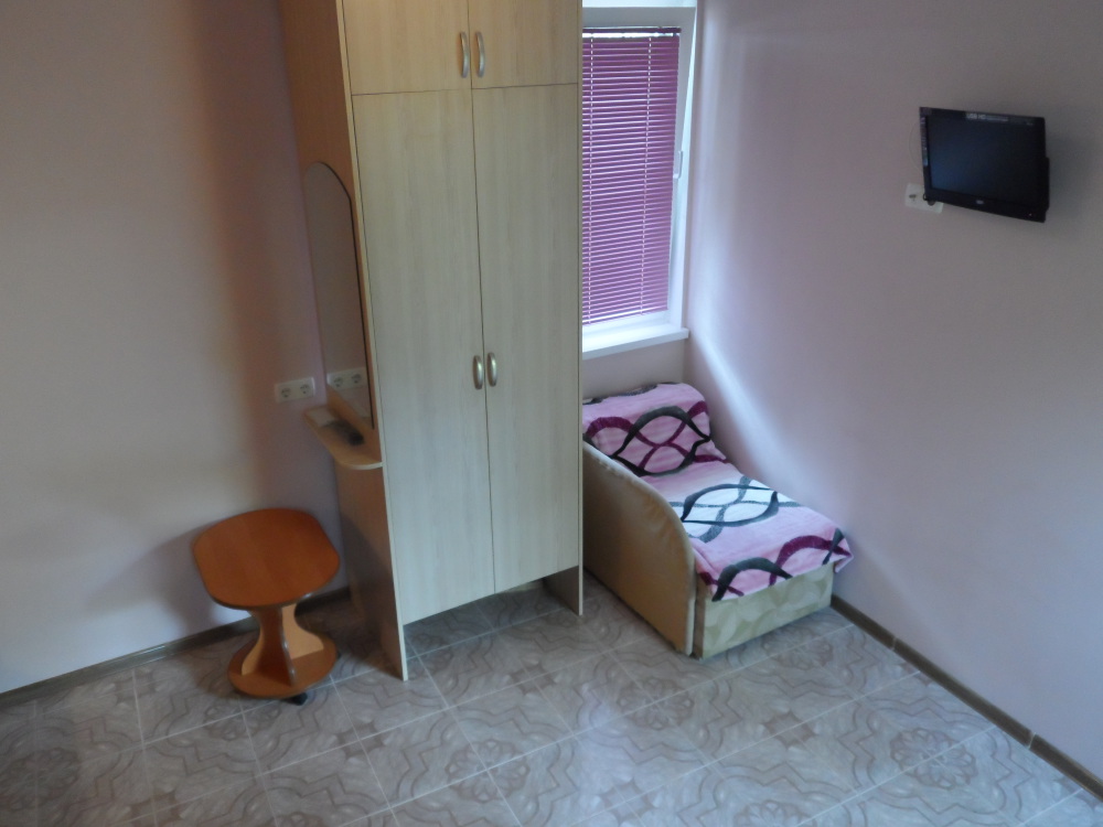 В спальне есть двуспальная кровать, раскладное кресло, телевизор. Комната прохладная, просторная.