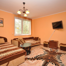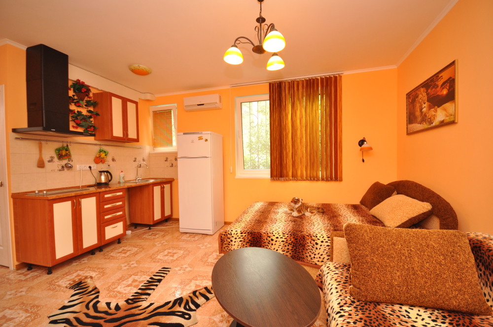 4-местный номер: В номере комфортно размещается 4 человека. В номере есть: кухня и ванная комната, ТВ и кондиционер, просторная терраса, стиральная машинка. В 50 метрах от дома - бесплатная парковка.