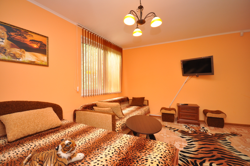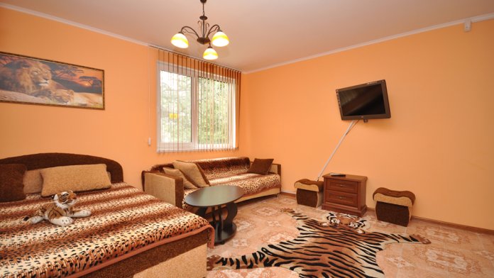 В номере комфортно размещается 3 человека (2 взрослых + ребенок).