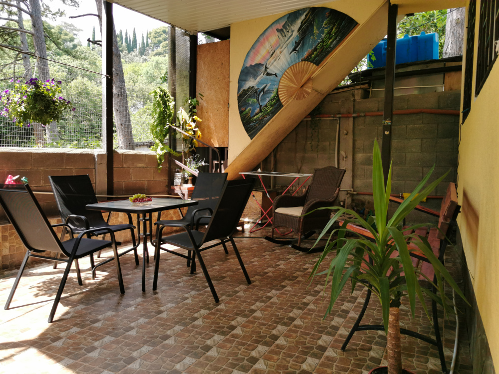 В номере комфортно размещается 4 человека. В номере есть: кухня и ванная комната, ТВ и кондиционер, просторная терраса, стиральная машинка. В 50 метрах от дома - бесплатная парковка и магазин.