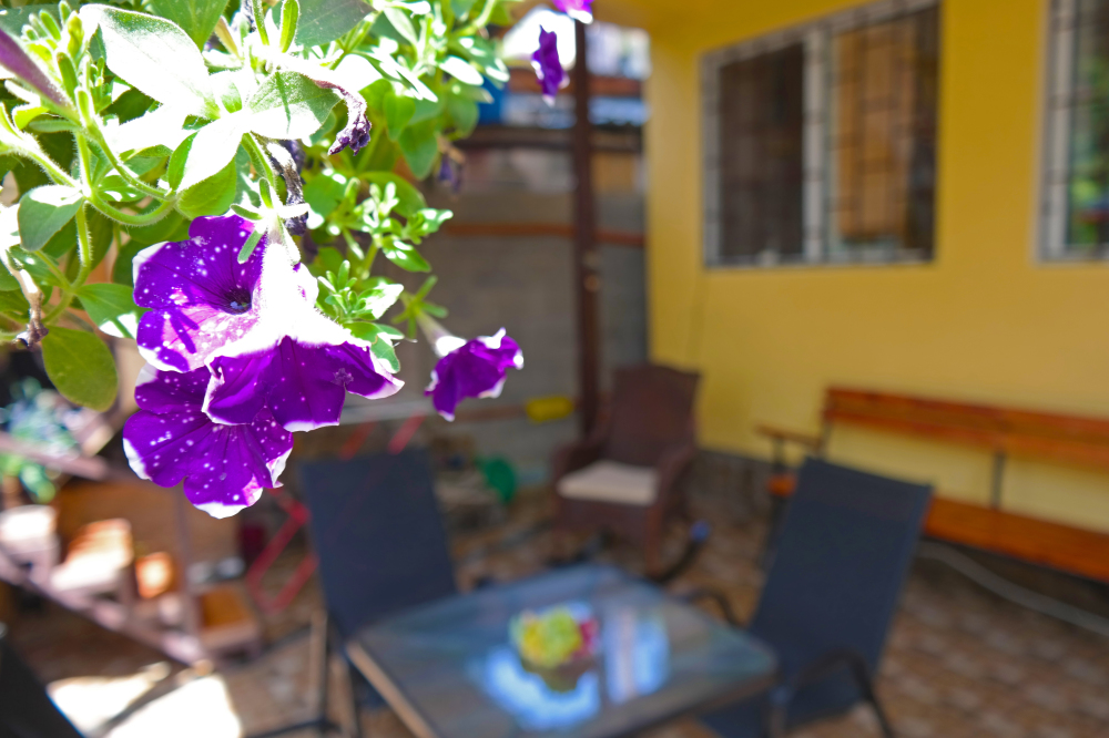 Есть свой уютный тенистый закрытый двор с садовыми качелями, столиком.