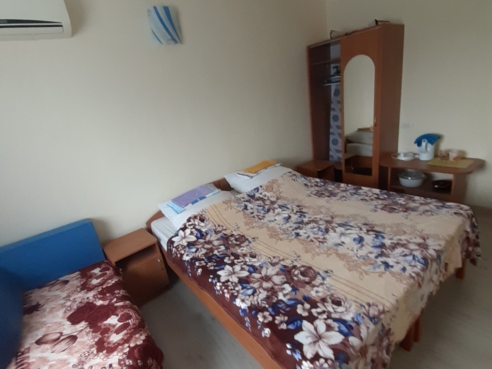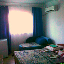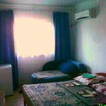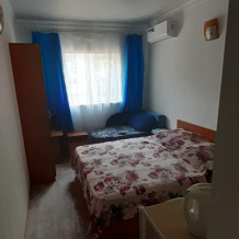 Стандартный трехместный номер со всеми удобствами. в Номере две кровати, диван, вешалка для одежды с зеркалом, тумба для обуви, прикроватные тумбочки, журнальный столик, вентилятор, стеклопакеты, москитные сетки. Отделан современными материалами.
