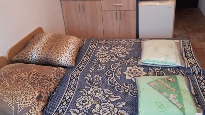 Небольшая уютная комната с двумя кроватями, телевизором, холодильником, вентилятором. Имеется журнальный столик, прикроватные тумбочки, Вешалка для одежды с зеркалом, тумба для обуви. Душ и туалет персональные в отдельных кабинках в 10 метрах от номера.