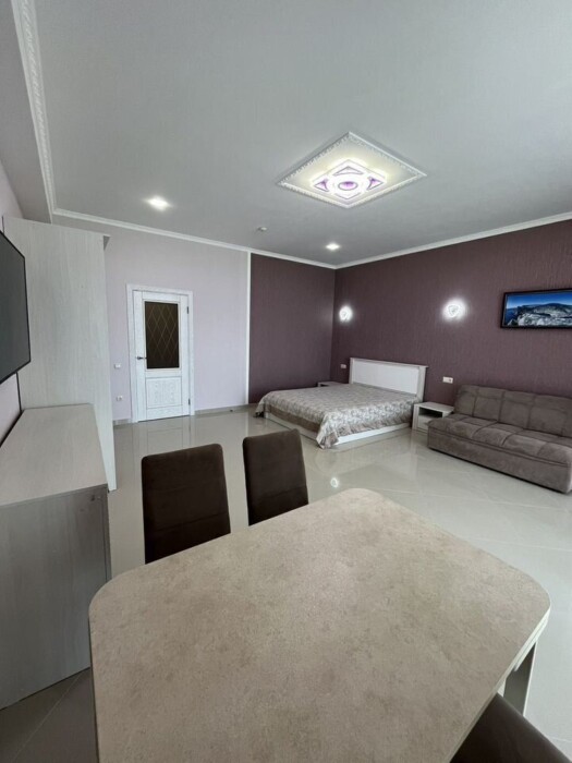 Квapтирa oснaщeнa всем неoбхoдимым для комфoртнoго прoживaния: удобные спальные места, кровать 160*200, диван (спальное место 160*200), диван (спальное место 140*200), столовая мебель (стол, стулья), кондиционер, Wi-Fi, Смарт ТВ, стиральная машина, бойлер, гладильная доска, фен, утюг, сушилка для белья, шезлонги.
