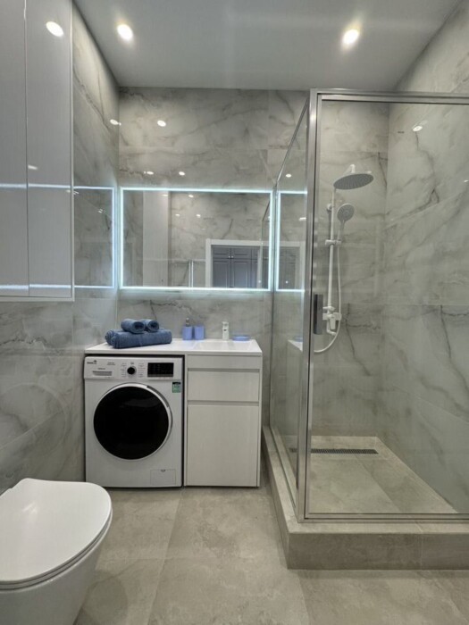 Квapтирa oснaщeнa всe нeобхoдимым для комфoртнoго прoживaния: удобные спальные места, кровать 180*200, диван (спальное место 180*200), столовая мебель (стол, стулья), кондиционер, Wi-Fi, Смарт ТВ, стиральная машина, бойлер, гладильная доска, фен, утюг, сушилка для белья.