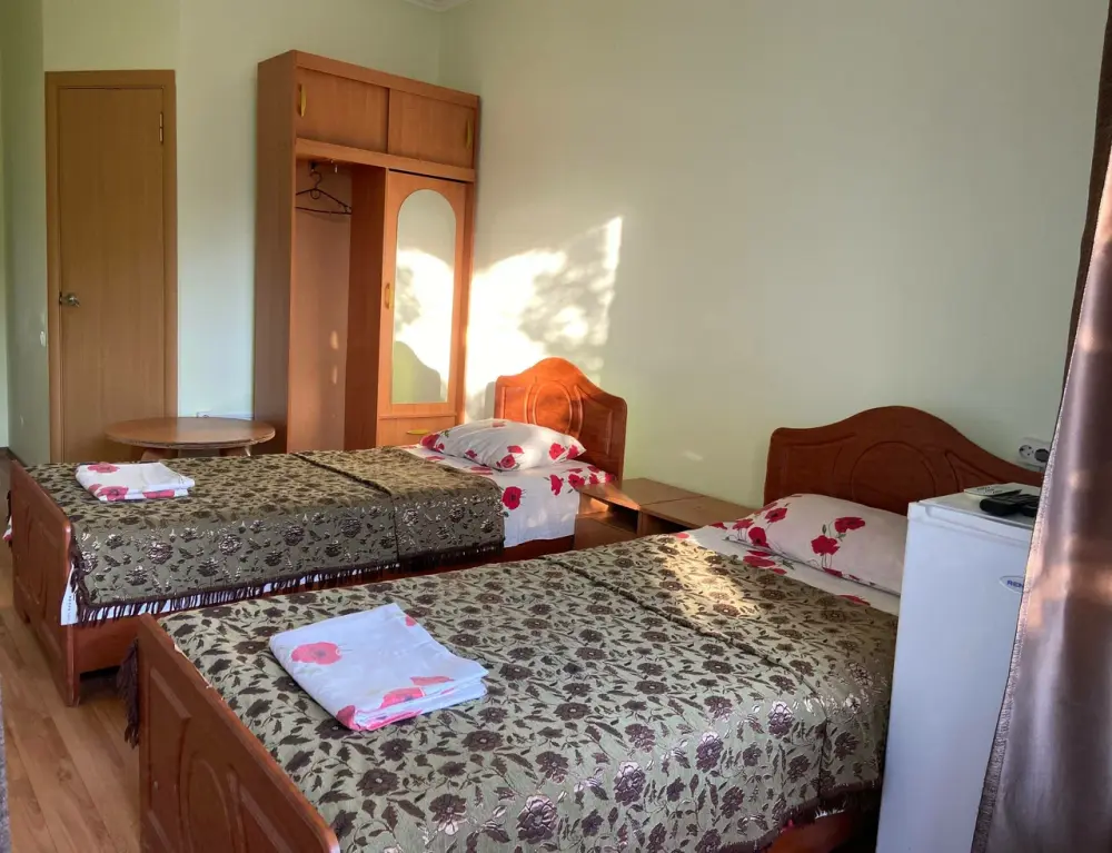 Варианты: 2-спальная кровать или две 1-спальных кровати. В номере: отопление, гладильная доска,