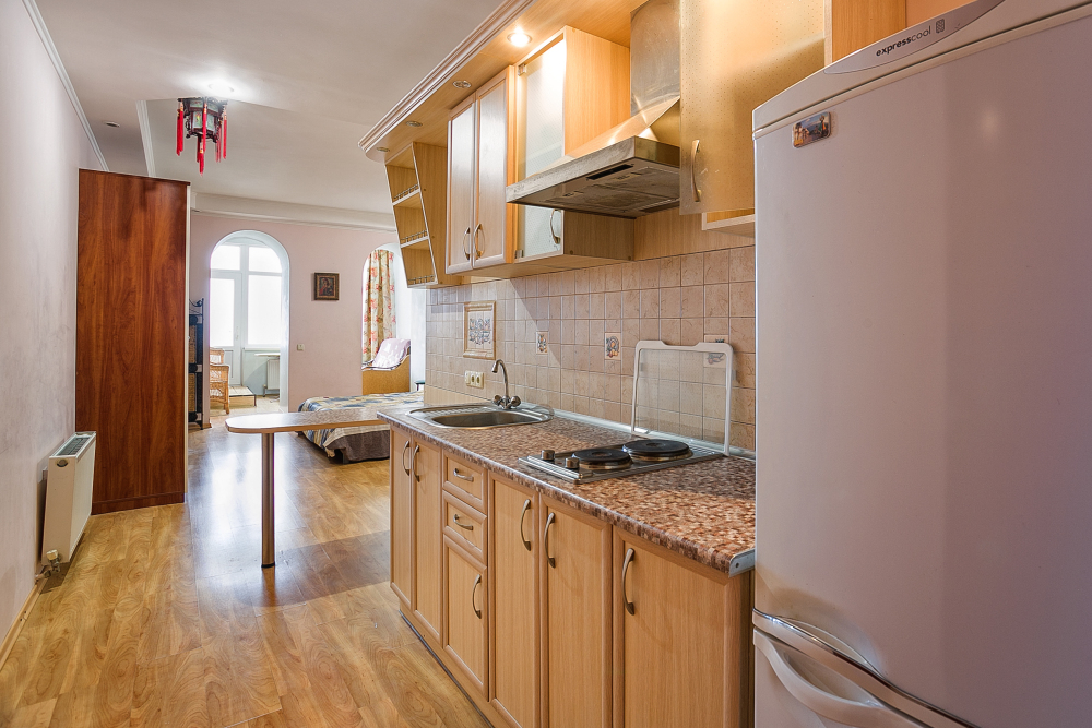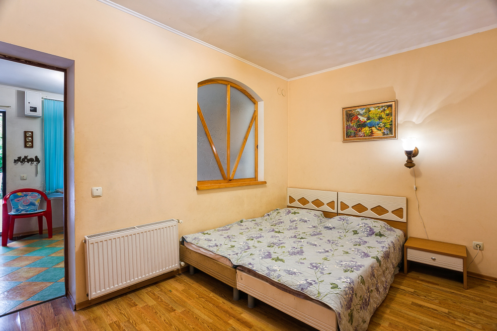 Двухкомнатная квартира в Ялте со своим двориком, находится в пяти минутах пешком от пляжа Массандровский.