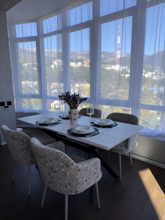 - Панорамные Виды: С балкона открывается панорамный вид на Ялту и маяк. Из эркера насладитесь видами моря и гор.