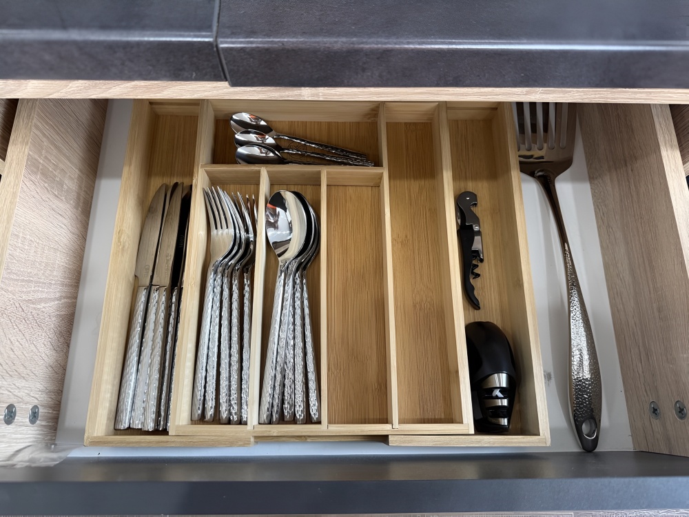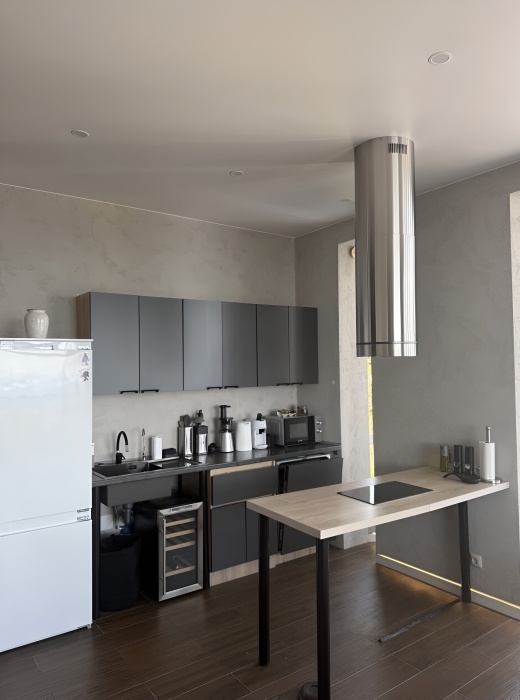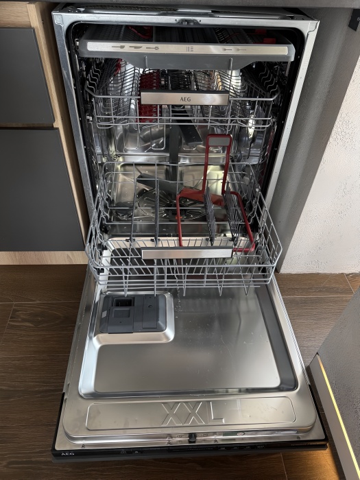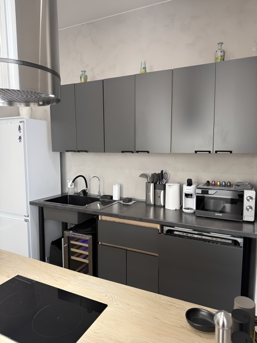 - Премиальная Техника: Большая посудомоечная машина AEG, индукционная плита, микроволновая печь, чайник.