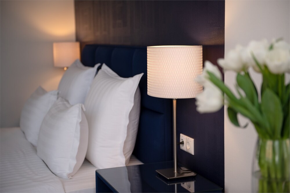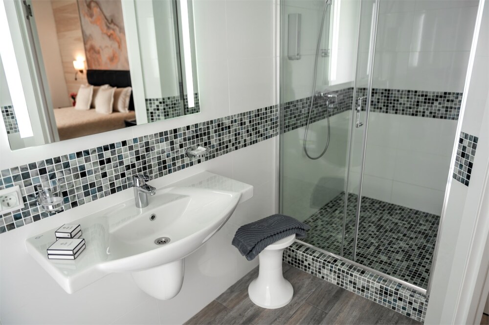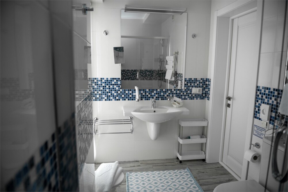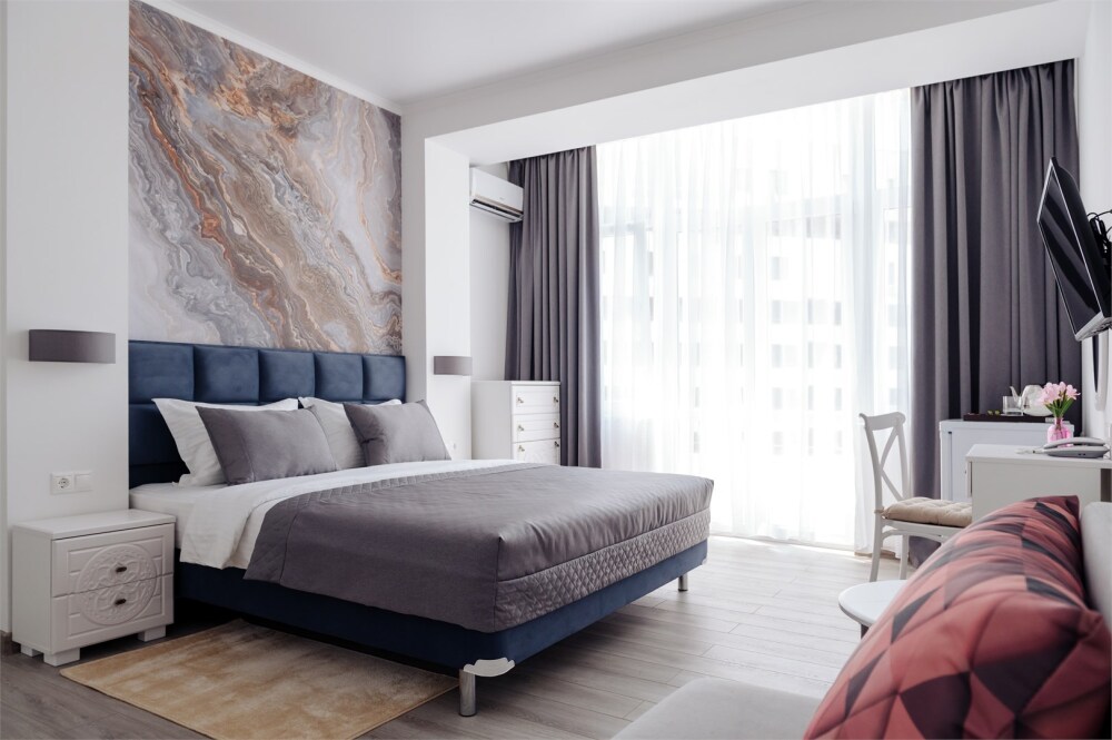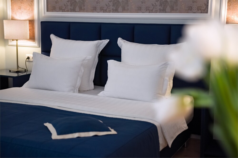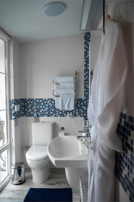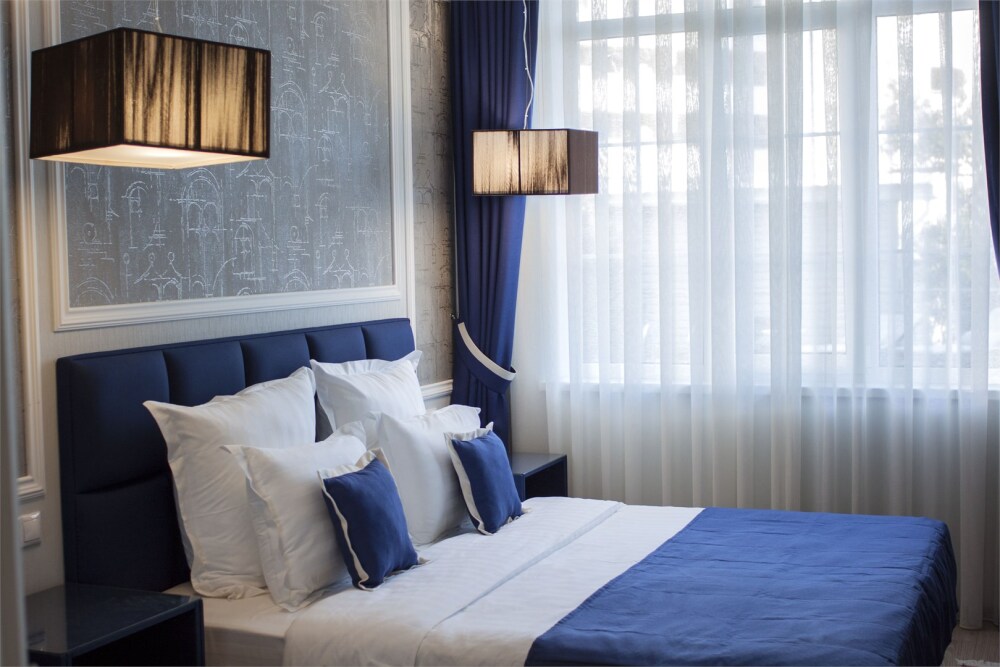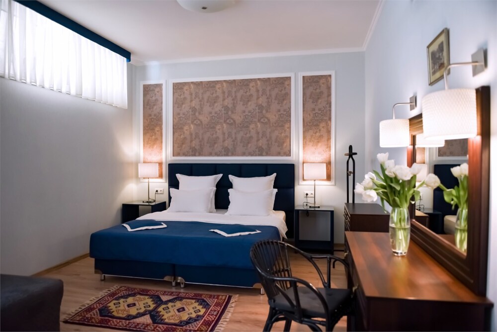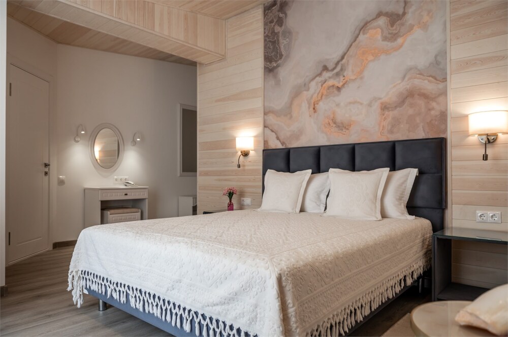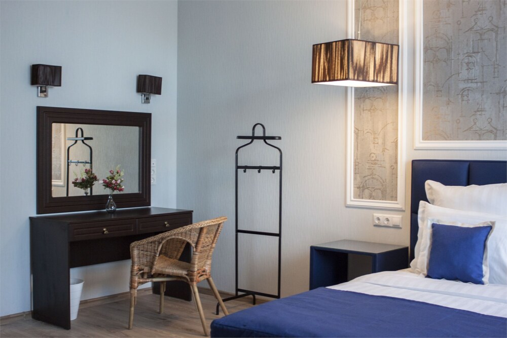 Элегантный и просторный однокомнатный номер площадью 39,5 кв. м. оформлен в классическом стиле и пастельных тонах, с видом на море и горы. Оборудован 1 двуспальной кроватью или 2 односпальными, дополнительным местом (диван), балконом и всем необходимым для комфортного отдыха.