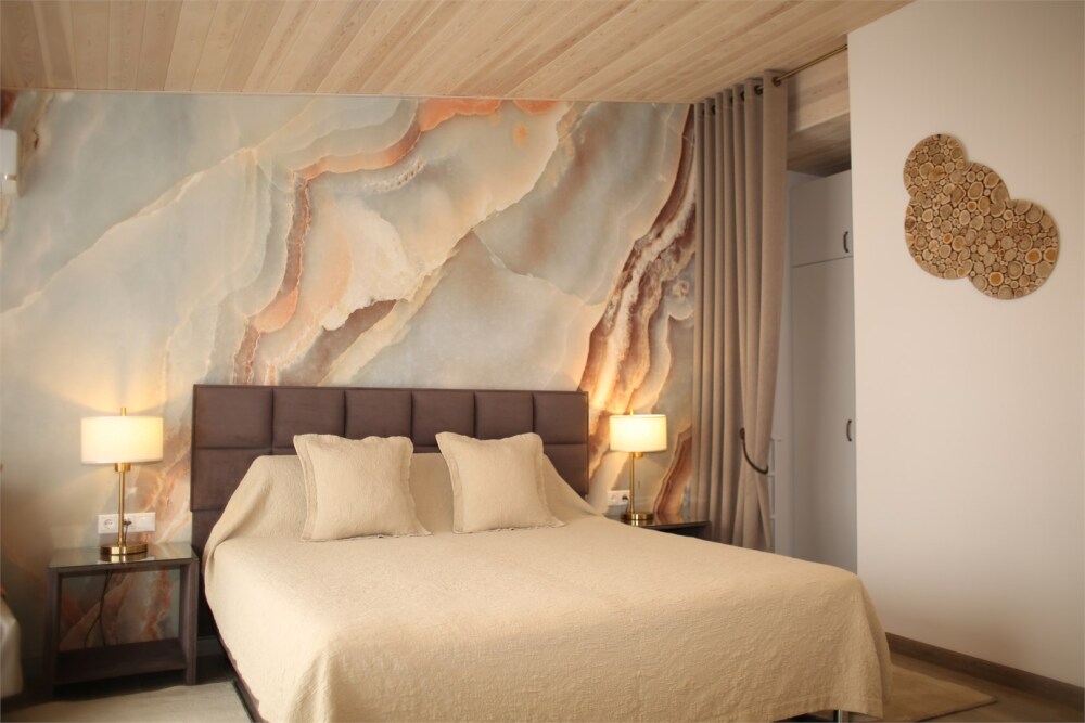 Комфортный номер для двоих (17,25 кв. м.), с видом на горы и окрестности, оборудован всем необходимым для отдыха. Летом прохладный за счет своего расположения и охлаждающего панно в изголовье кровати.