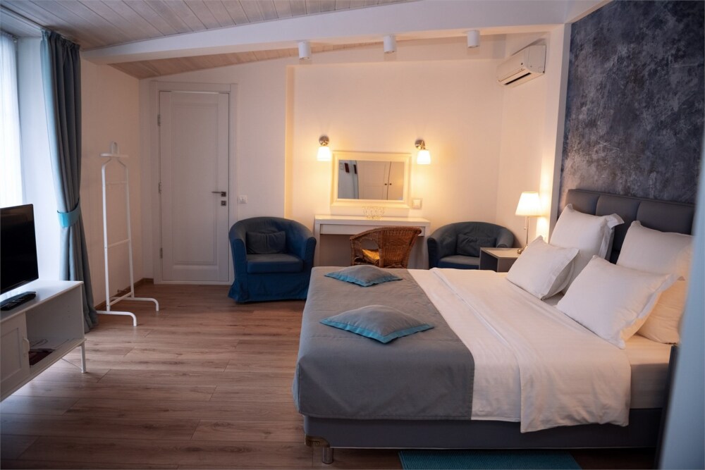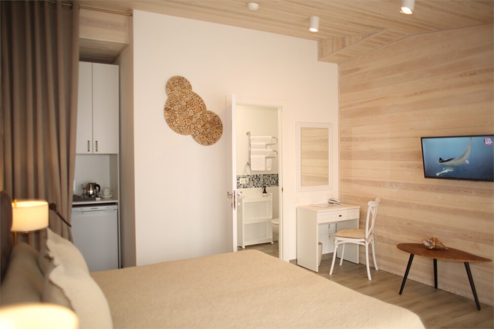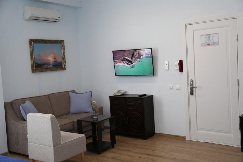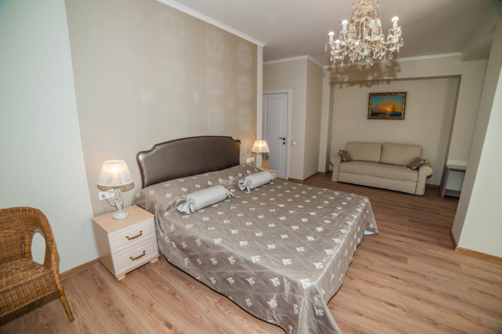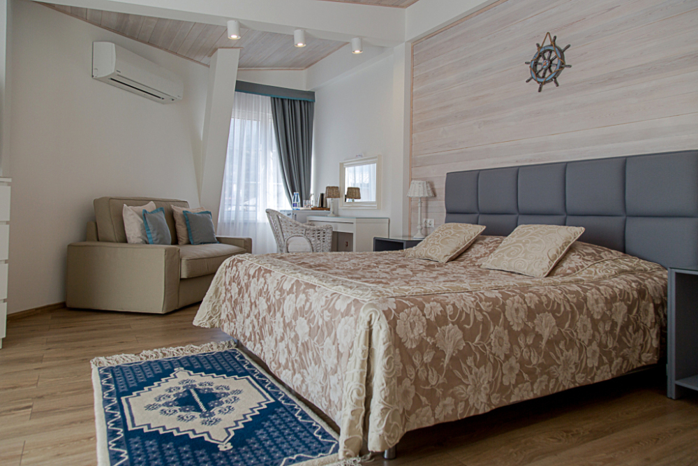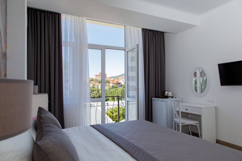 Большой, очень светлый номер, с видом на море и горы, оборудован всем необходимым для отдыха. В номере: двуспальная кровать или 2 односпальные, Диван 2-местный, Балкон, Wi-Fi.