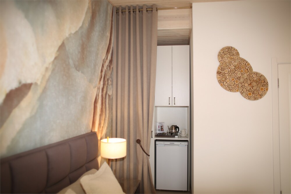 Уютный, тихий однокомнатный номер первой категории для двоих общей площадью 22 кв. м., с видом на горы и окрестности. Укомплектован всем необходимым для комфортного пребывания.
