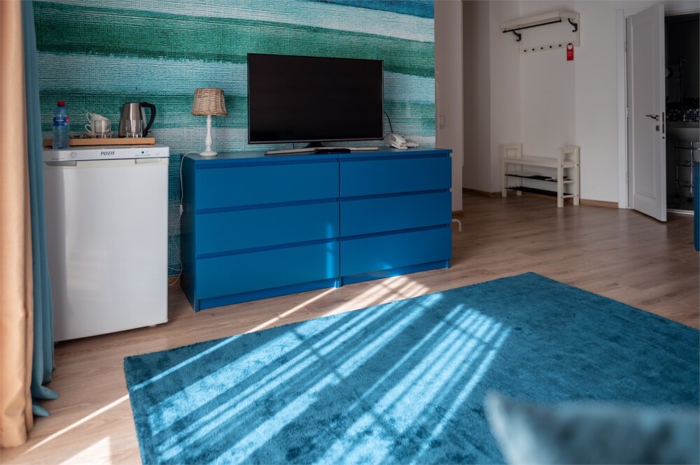 Большой комфортный номер-студия 38,1 кв. м с 2 не изолированными комнатами, с видом на горы, оборудован всем необходимым для отдыха. В номере: двуспальная кровать, Диван 3-местный, 2 Балкона, 2 - TV, Wi-Fi.