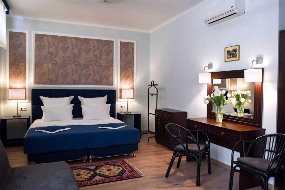 Теплая атмосфера гостеприимства ожидает Вас в комфортабельных номерах, площадью от 17 до 40 кв. м. оборудованных всем необходимым для приятного отдыха в одном из самых излюбленных мест творческой интеллигенции.