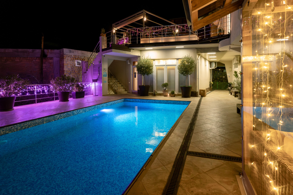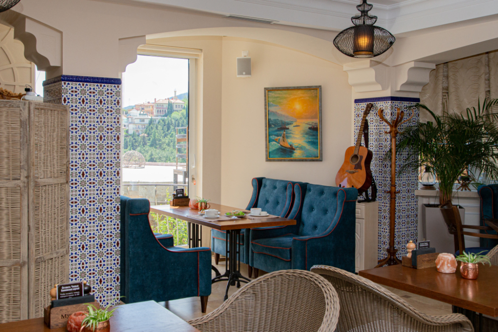 К услугам наших гостей открытый подогреваемый бассейн, ресторан в марокканском стиле с открытой террасой, банный комплекс, парковка, детский клуб, трансфер до/с пляжа на электрокаре.