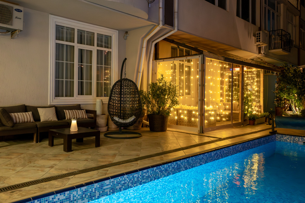 Однокомнатный стильный номер площадью до 33 кв. м., с собственным выходом к бассейну, отвечает всем требованиям к полноценному отдыху и комфорту. Идеально подойдет для семьи с детьми, с возможностью взять с собой любимого питомца.