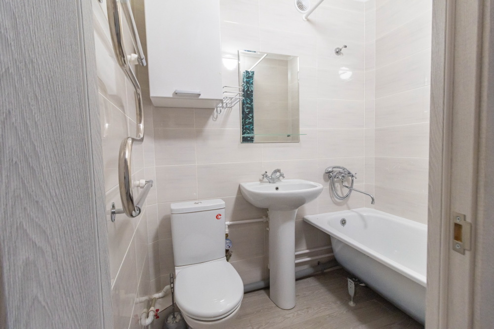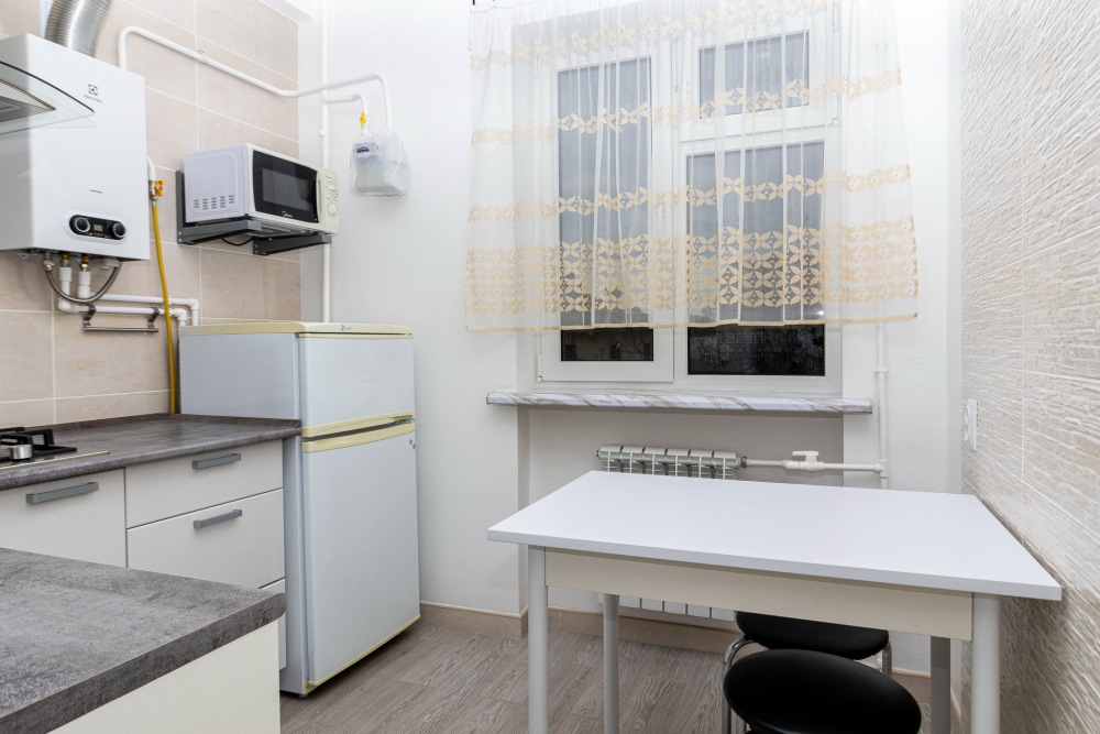 В квартире имеется все необходимое для комфортного проживания. Пастельные принадлежности, посуда.