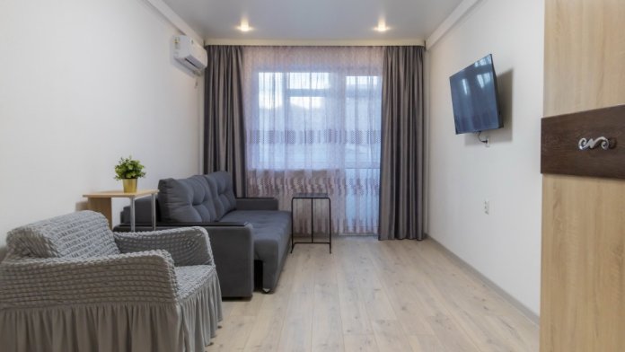 Двойной стеклопакет в спальне надежно защитит от шума с улицы. Новый плотный матрас позволит душевно отдохнуть. В двух вместительных шкафах удобно разместятся ваши вещи. В зале новый роскошный диван, телевизор со СМАРТ-TV.