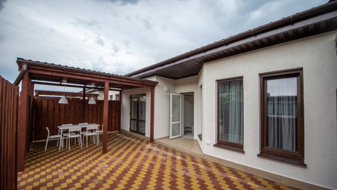 Дом имеет собственную террасу с обеденной зоной и выходом/входом на кухню, что придает особенность при проживании.