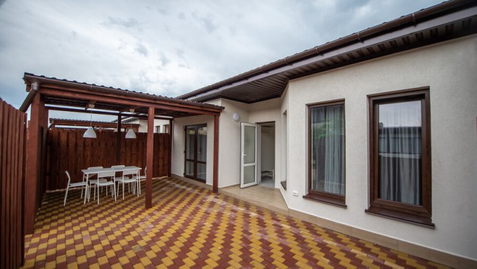 Дом имеет собственную террасу с обеденной зоной и выходом/входом на кухню, что придает особенность при проживании.