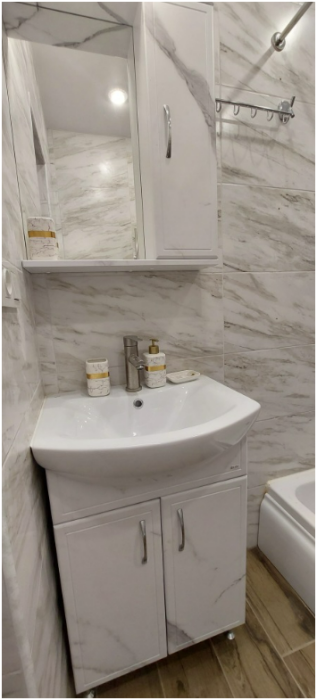 В ванной комнате всегда в Вашем распоряжении шампунь, гель для душа, мыло, новая мочалка, порошок и капсулы для стирки белья.