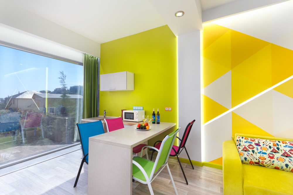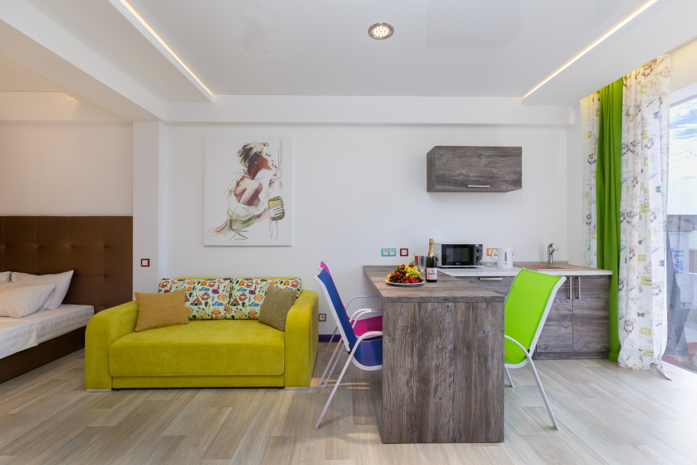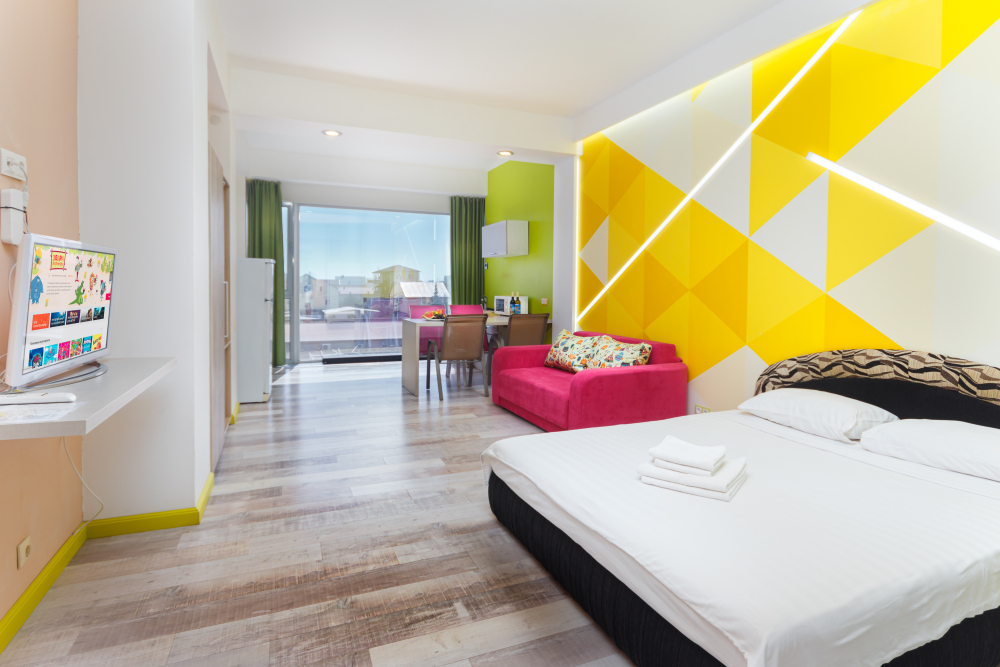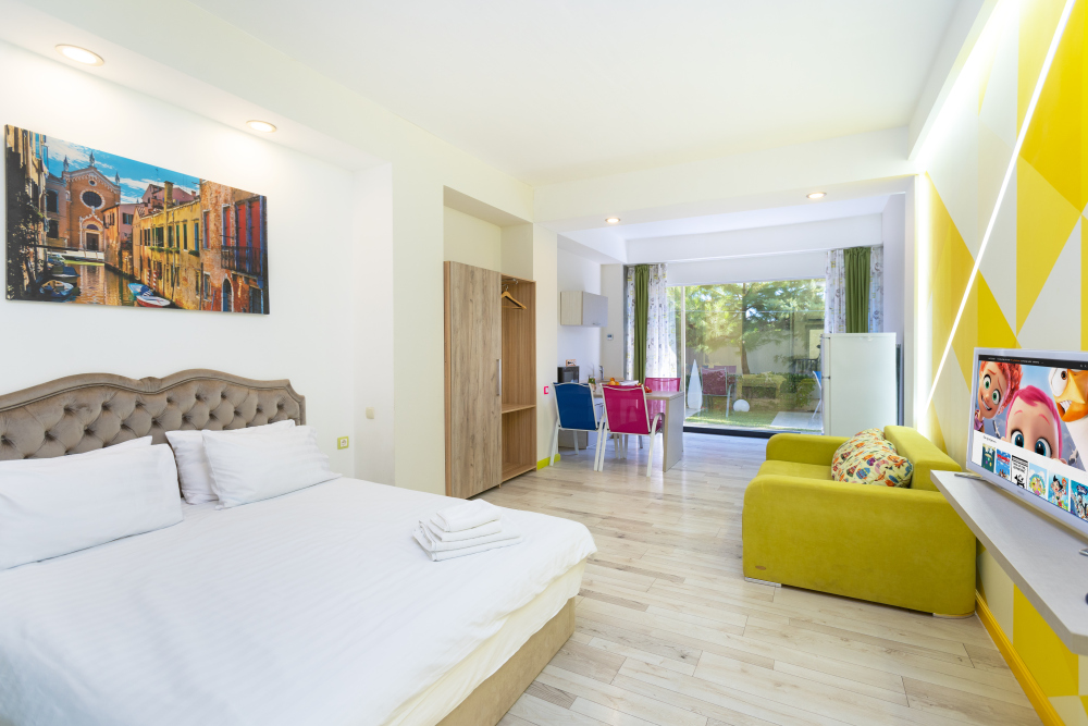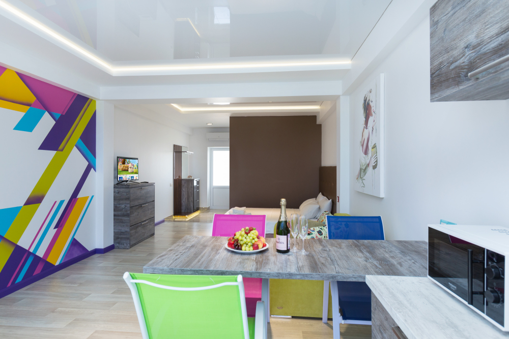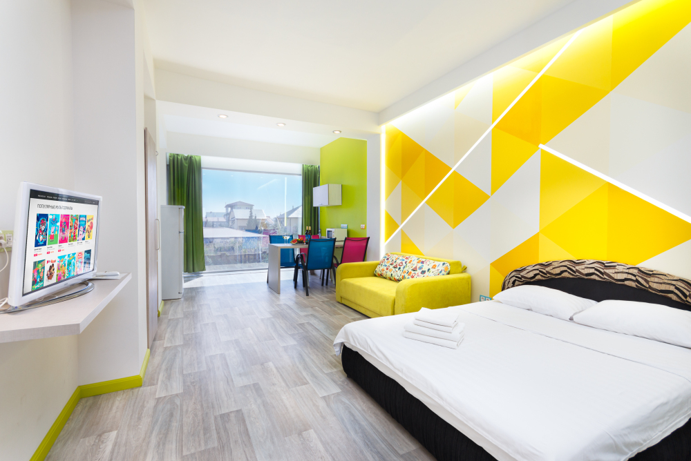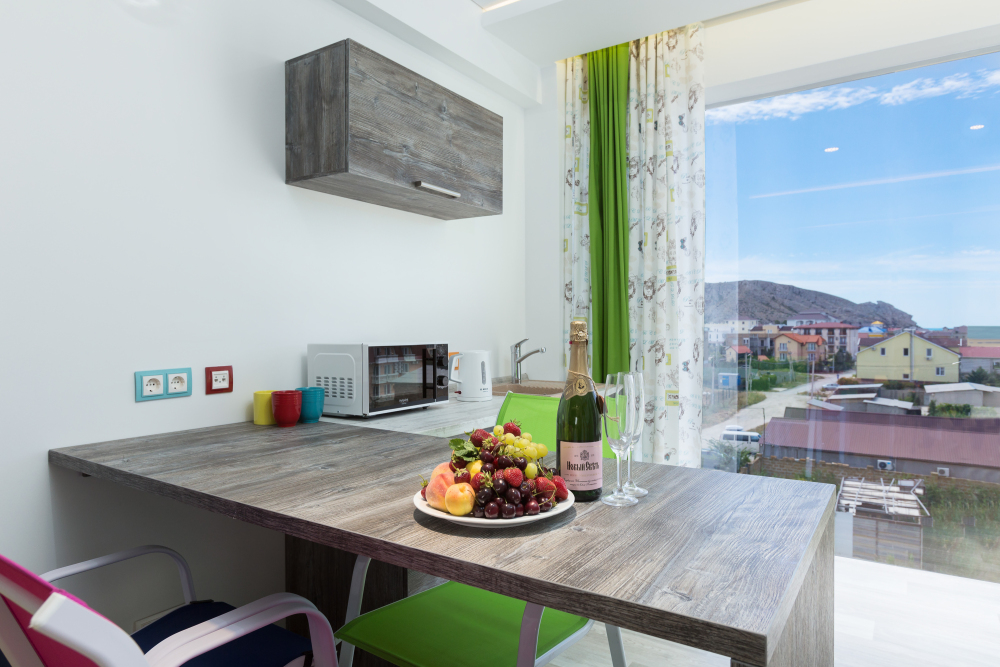 Наш отель - это удобное месторасположение относительно берега моря, аквапарка, дельфинария и центра города; уютные просторные номера с панорамными окнами создают домашнюю атмосферу и радуют глаз современным дизайном; став гостем нашего отеля впервые, Вы навсегда влюбитесь в живописный райский уголок Крыма и сделаете это место отдыха доброй традицией для всей Вашей семьи!