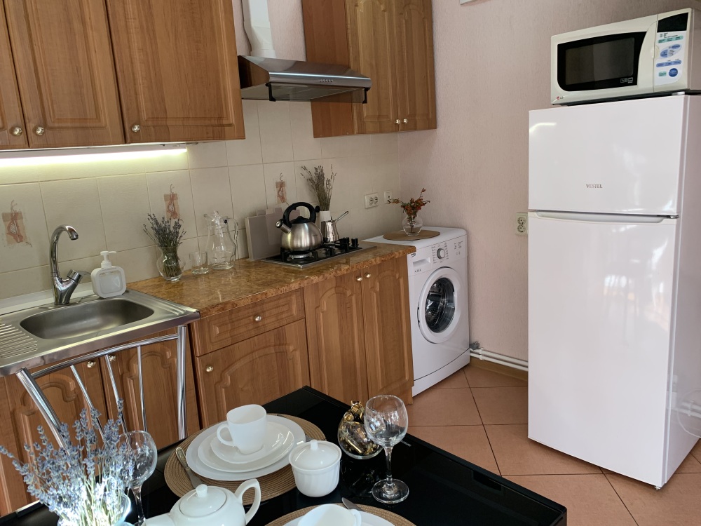 -️ На кухне полный набор хорошей посуды, газовая плита, микроволновка, холодильник, телевизор, обеденная группа