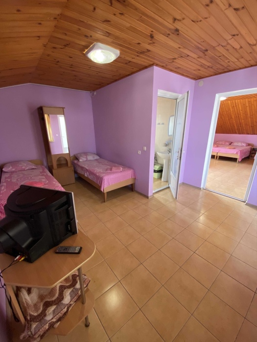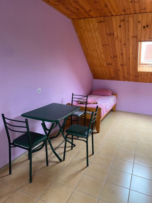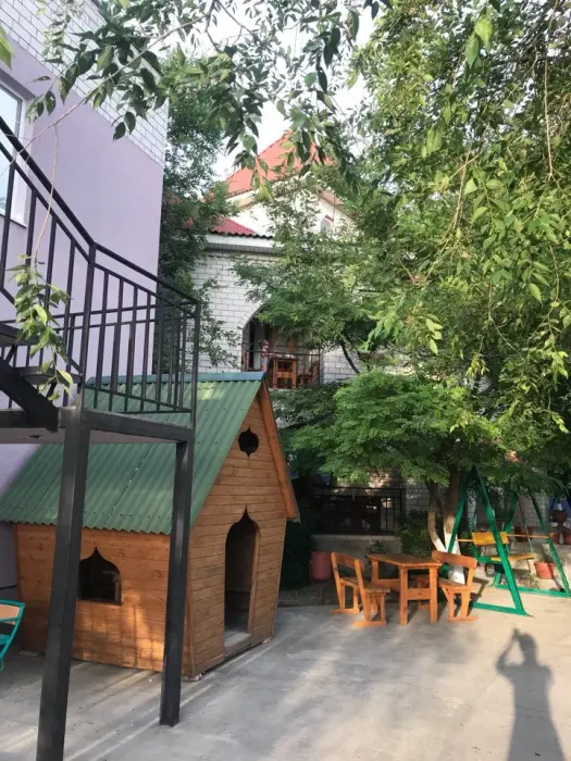 К услугам гостей номера разных категорий и вместимости. Территория гостевого дома благоустроена, есть хорошая детская площадка, горка, качели. Во дворе находится кухня для самостоятельного приготовления пищи, оборудованная посудой. Много беседок на разное количество посадочных мест. На территории находится мангальная зона, к которой подведен свет и вода. Имеется парковка. Во дворе растут огромные деревья, которые защищают наших постояльцев от солнца.