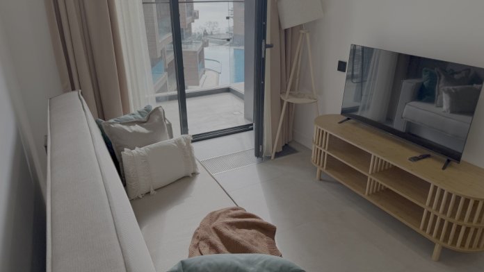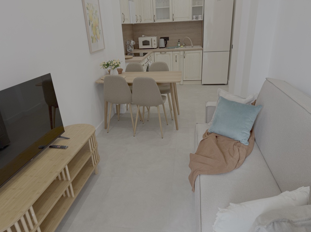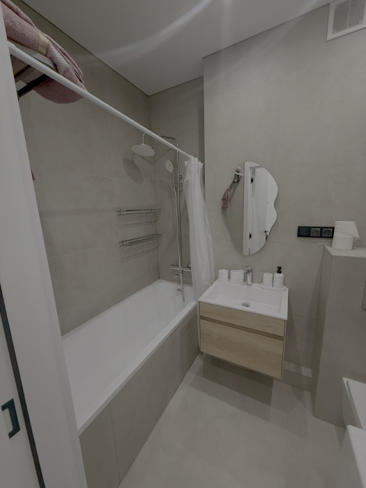 Каждый уголок квартиры оснащён большими экранами Smart TV, позволяющими удобно просматривать любимые фильмы и сериалы прямо из постели или сидя на кухне. Современный дизайн интерьера дополняют стильный санузел с удобной ванной и душем, стиральной машиной, качественной сантехникой и красивым зеркалом.
