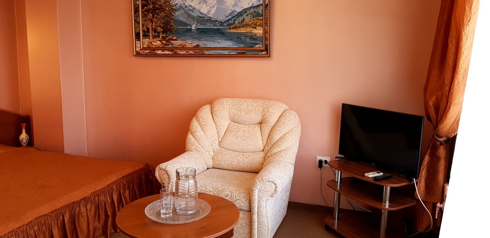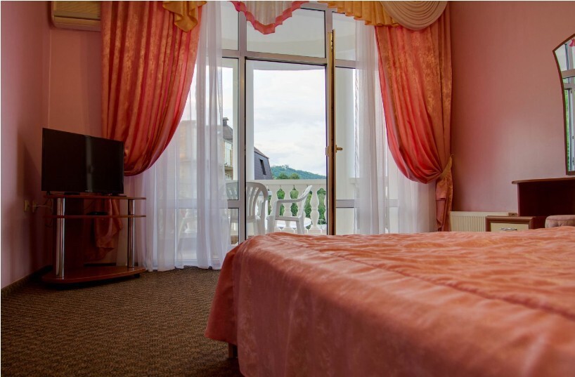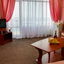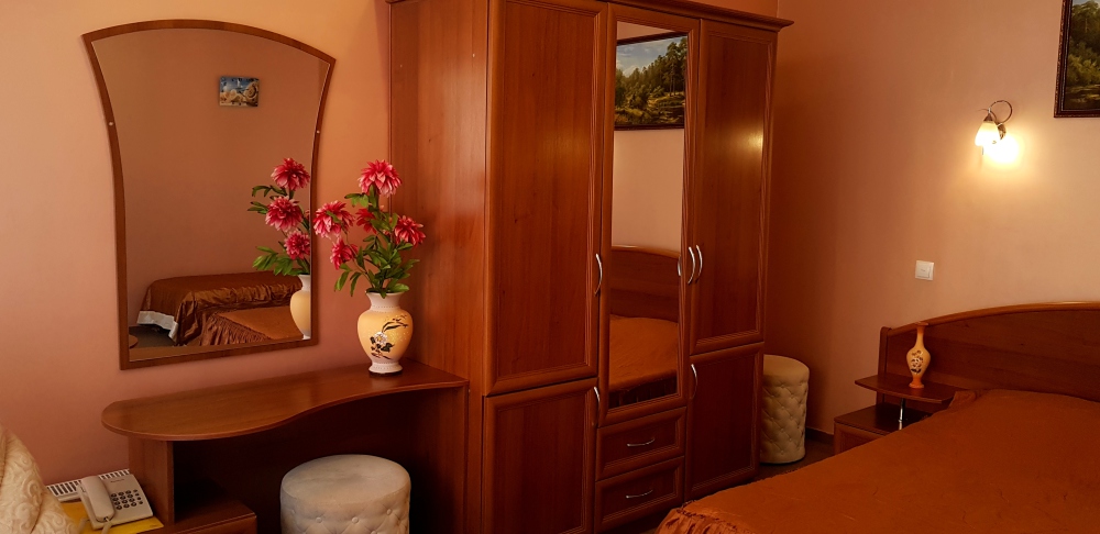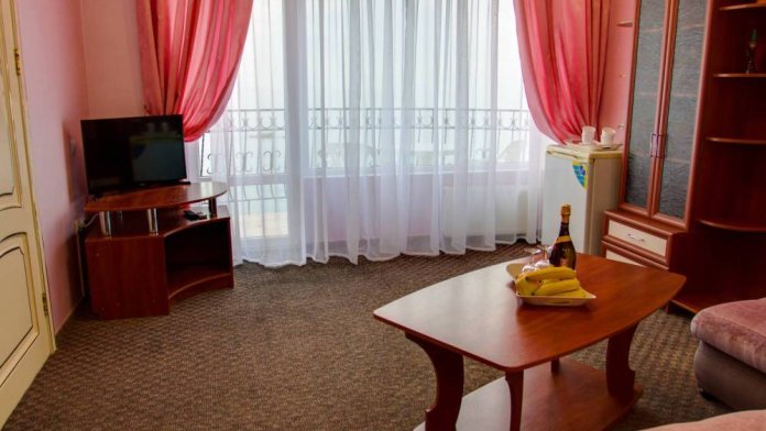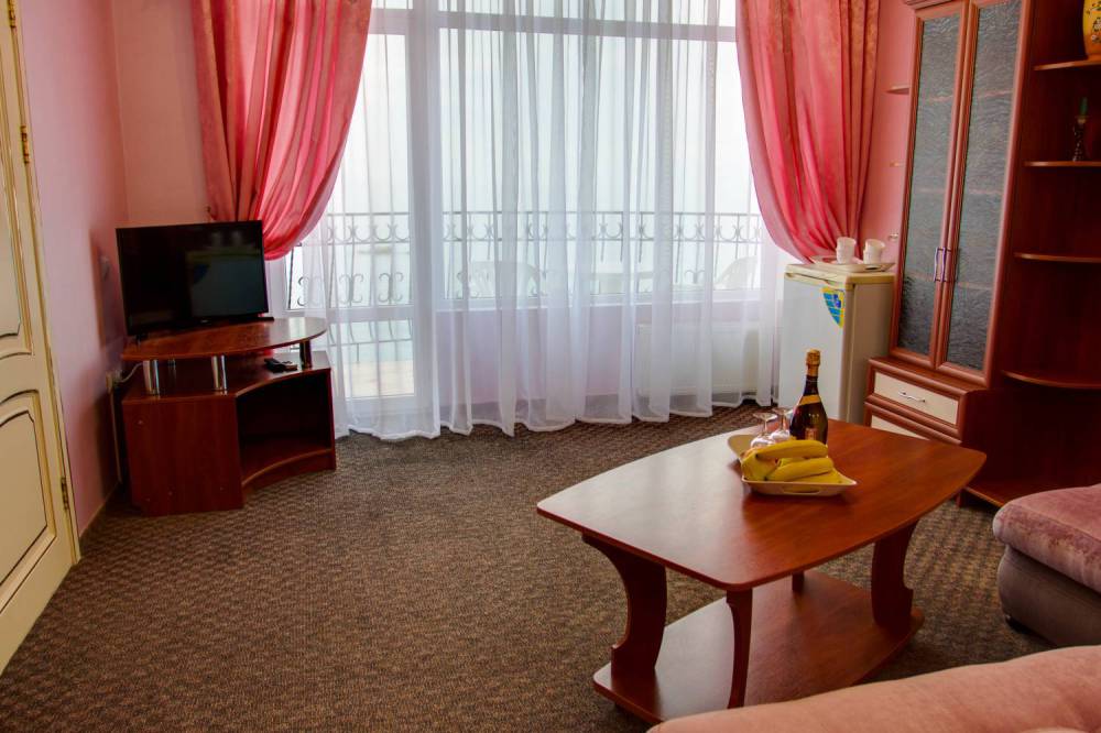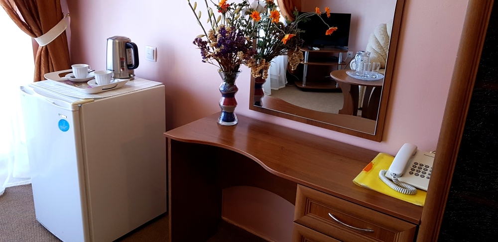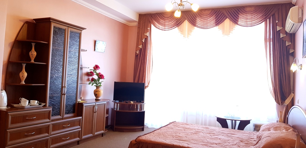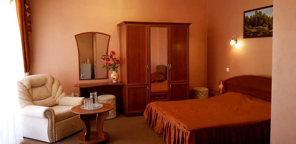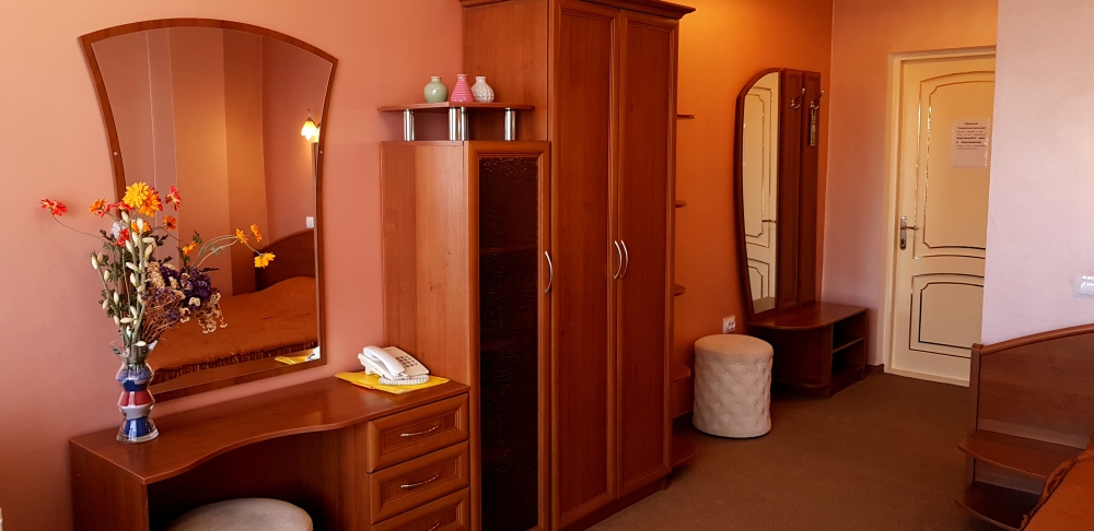 Наши номера просторные, имеют балкон (террасу или лоджию). Включают телевизор, кондиционер, холодильник. Кроме того, мы предоставляем для наших отдыхающих фильтрованную питьевую воду, чайник, необходимую посуду, фен. Ванные комнаты обустроены современной сантехникой. Всегда есть горячая и холодная вода. В номерах, категории люкс имеются ванна и биде.