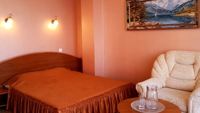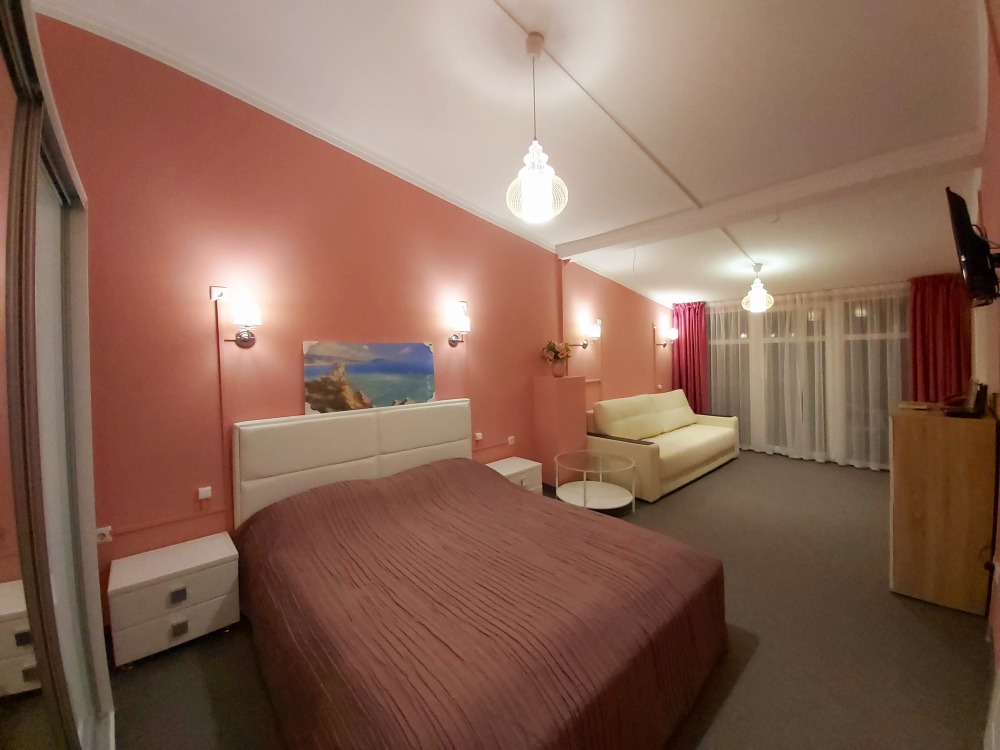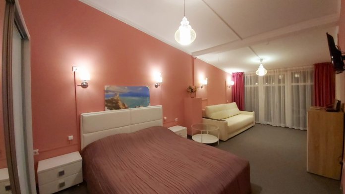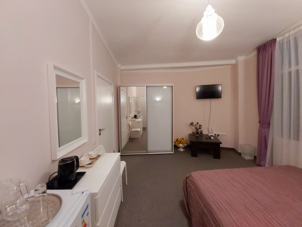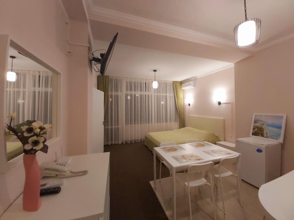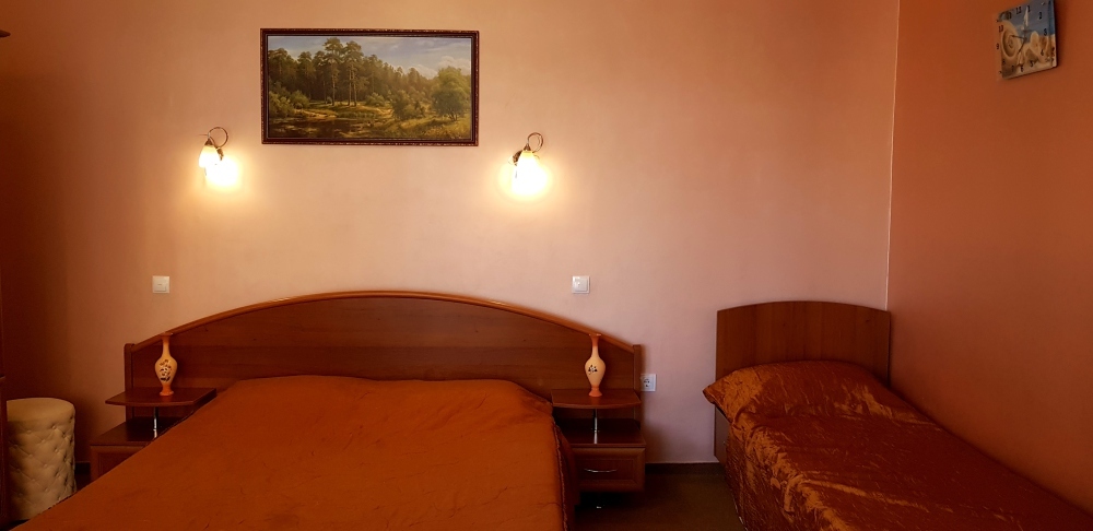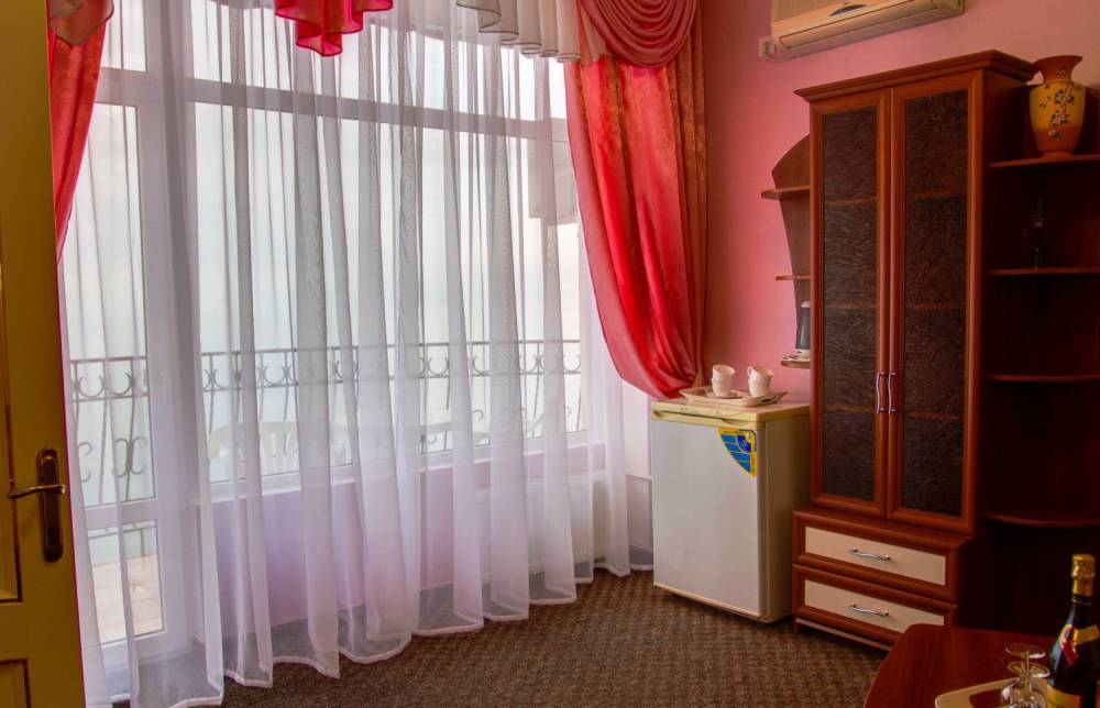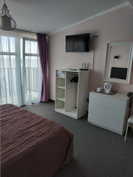 Наши номера просторные, имеют балкон (террасу или лоджию). Включают телевизор, кондиционер, холодильник. Кроме того, мы предоставляем для наших отдыхающих фильтрованную питьевую воду, чайник, необходимую посуду, фен. Ванные комнаты обустроены современной сантехникой. Всегда есть горячая и холодная вода. В номерах, категории люкс имеются ванна и биде.