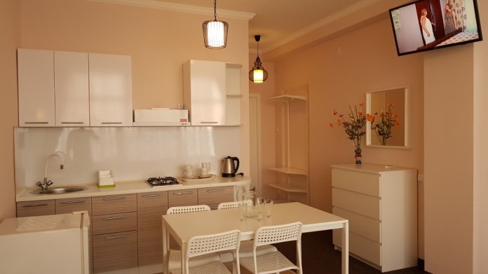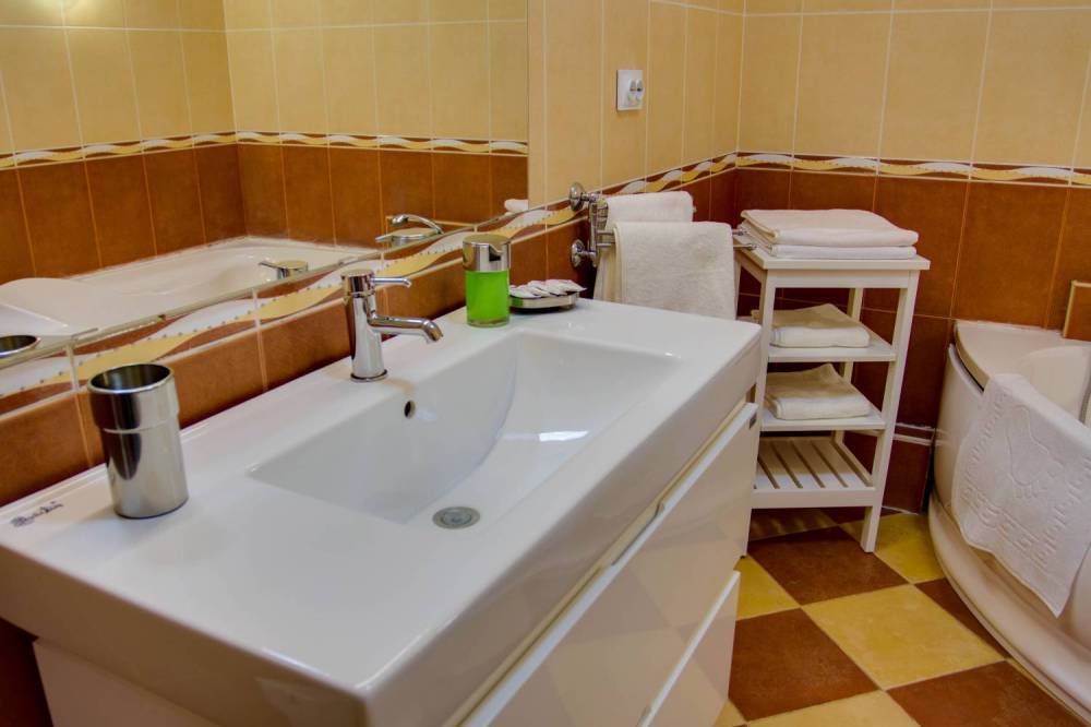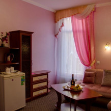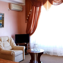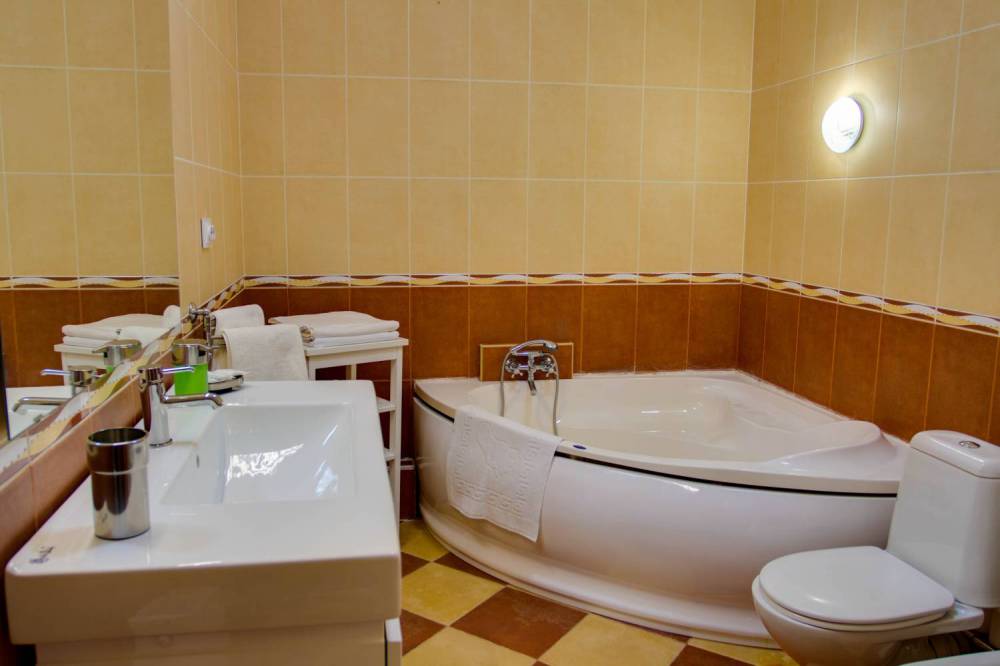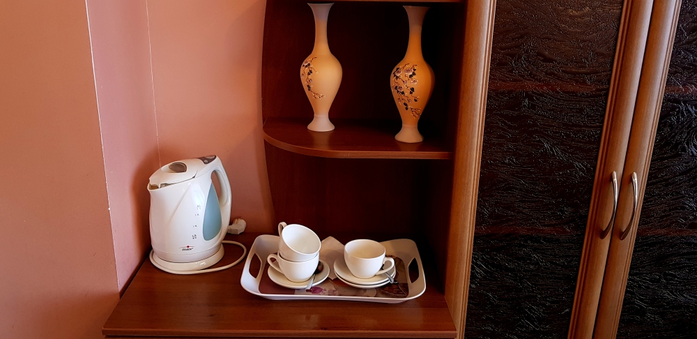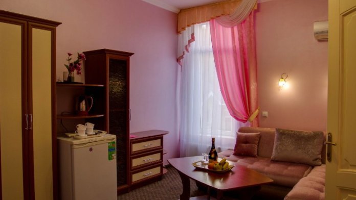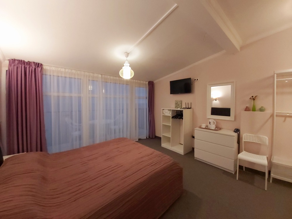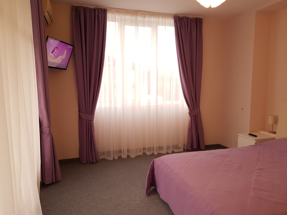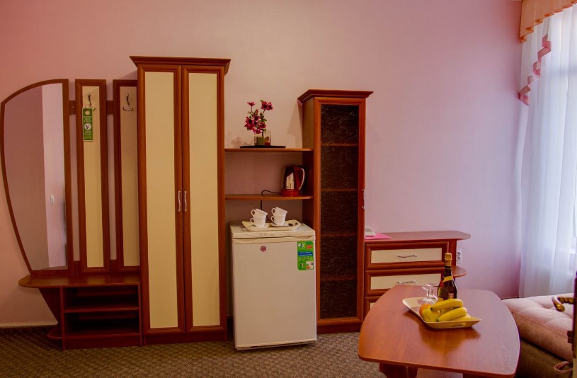 Наши номера просторные, имеют балкон (террасу или лоджию). Включают телевизор, кондиционер, холодильник. Кроме того, мы предоставляем для наших отдыхающих фильтрованную питьевую воду, чайник, необходимую посуду, фен. Ванные комнаты обустроены современной сантехникой. Всегда есть горячая и холодная вода. В номерах, категории люкс имеются ванна и биде.