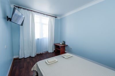 В гостевом доме каждый номер уникален, поэтому площадь номера и фон стен могут отличаться.