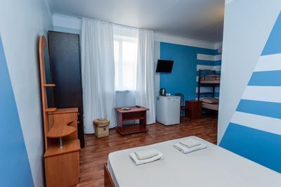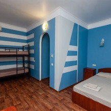 Идеально подойдёт для семейного отдыха. Номер имеет возможность размещения на дополнительном месте (в номере 1 двуспальная кровать размером 140/200 и 1 двухъярусная кровать на 2 спальных места размером 80/200).
