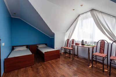 Номер расположен на 3 м этаже, имеет отдельную обеденную зону и вид на внутреннюю территорию гостевого дома.