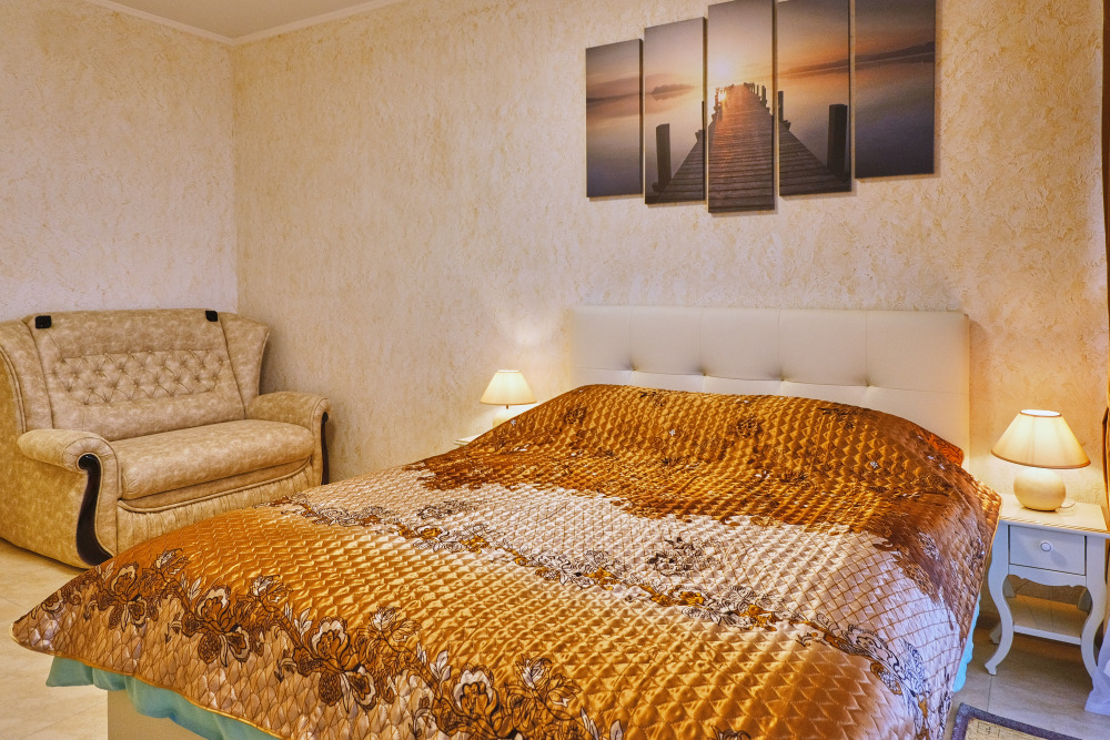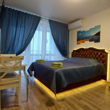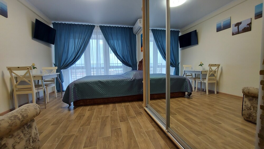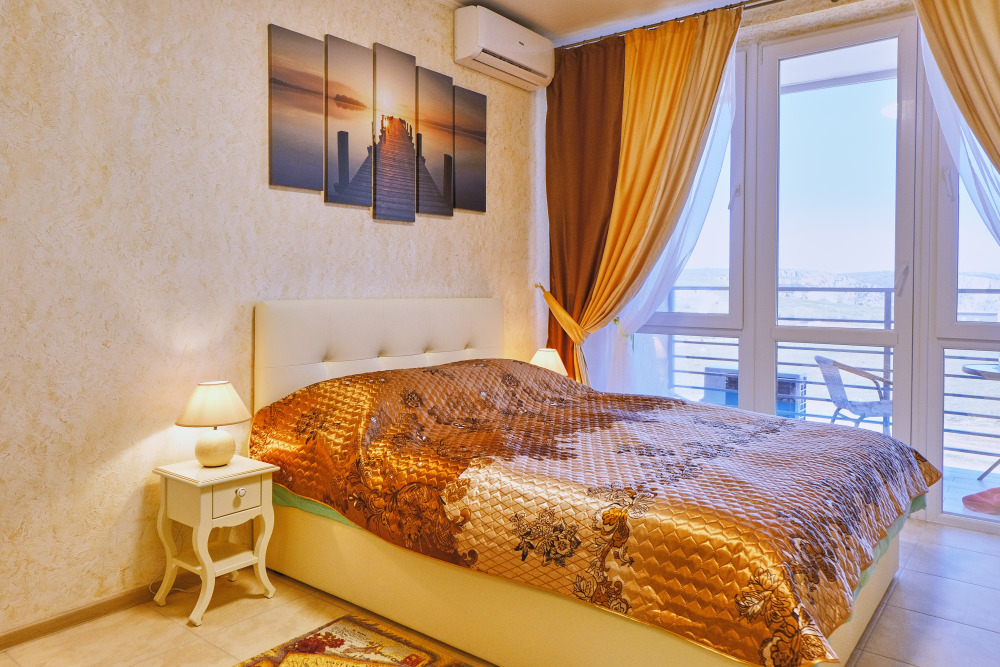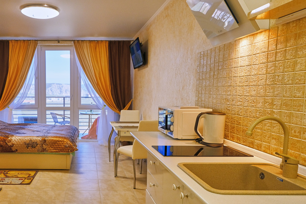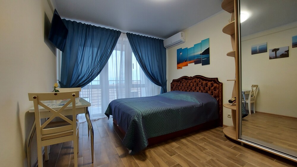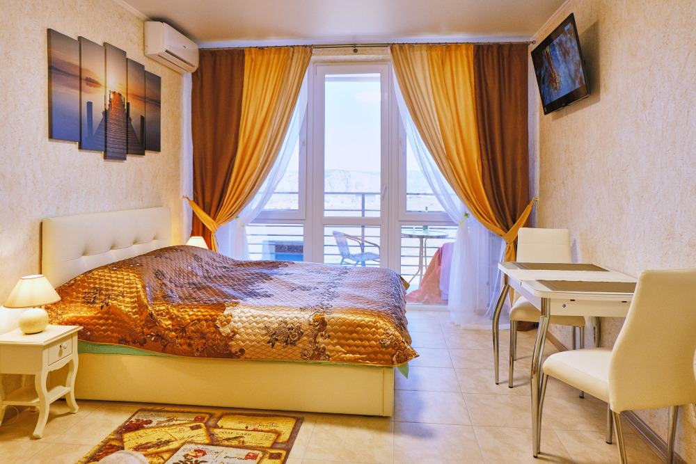 Сдаются уютные апартаменты на четвертом этаже с балконом. Первая береговая линия. Работает лифт. В апартаментах есть все необходимое для комфортного проживания: Wi-Fi, кондиционер, холодильник, телевизор с кабельным/цифровым ТВ, гардероб, стиральная машина, утюг, гладильная доска, сушилка для белья, фен, постельные принадлежности, полотенца, пляжные принадлежности (полотенца, сумка-подстилка). Спальня оборудована удобной двухспальной кроватью 200х160 и креслом-кроватью 180х95. Квартира имеет выход на балкон с видом на горы и море. На балконе расположена садовая мебель (стол и кресла). Кухня оснащена современной техникой (холодильник, микроволновка, индукционная печь, эл.чайник), кухонными принадлежностями, посудой и столовыми приборами. Ванная комната оборудована душевой кабиной, бойлер обеспечивает круглосуточную подачу горячей воды. В квартире предоставлены средства гигиены. На территории комплекса расположены ресторан «Фиолент», продуктовый магазин, небольшое кафе. Парковка бесплатная на территории комплекса. Курение и размещение с животными не допускаются.