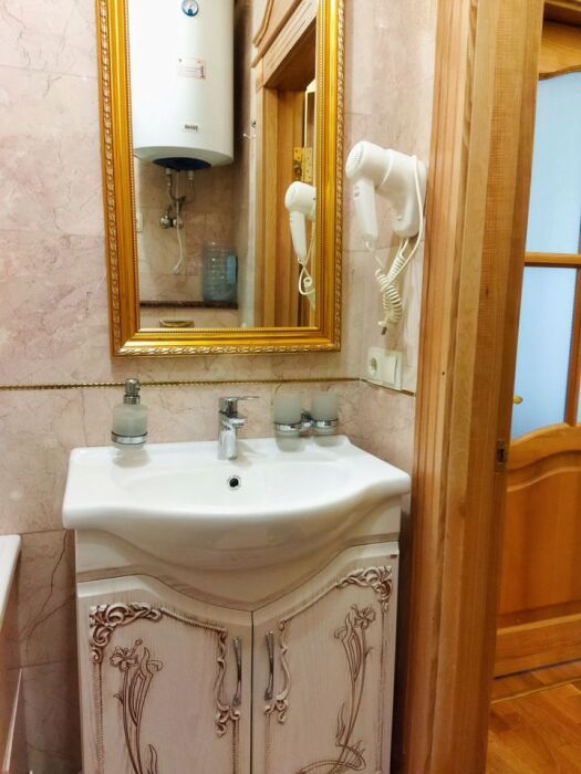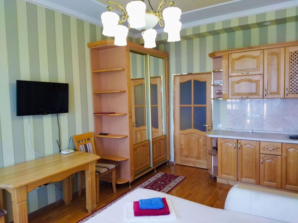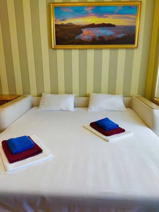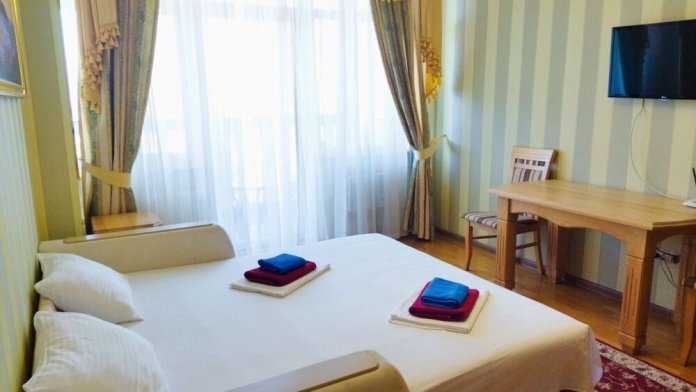 - бытовая техника: кондиционер, плоский телевизор с кабельным телевидением, Wi-Fi, мини-холодильник, одноконфорочная электрическая плита , электрочайник, водонагреватель, а также утюг с гладильной доской, фен, сушилка для белья.