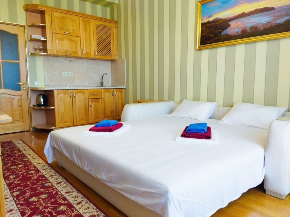 Предлагаем отдохнуть в апартаментах, которые находятся в элитном апарт-отеле «Гранд-Палас». В красивой и уютной студии с дизайнерским ремонтом и хорошей мебелью, Вы сможете незабываемо провести свой отпуск или выходные. На открытом балкончике с чудесными видами на Черное море, сидя в удобных креслах, можно утром наслаждаться горячим кофе, а вечером встречать закаты с холодным Крымским Шампанским!