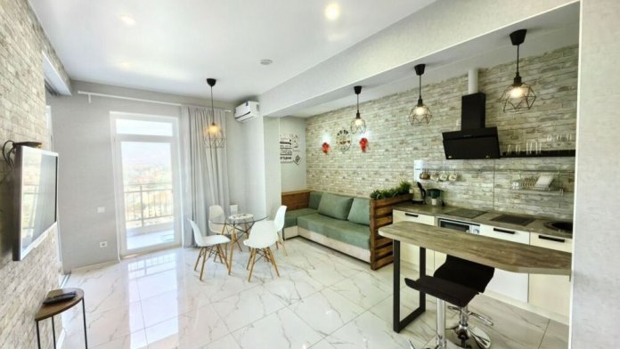 Сеть недвижимости посуточной аренды «ПОГУЛЯЙ в АЛУШТЕ» предлагает отдохнуть в комфортных апартаментах с панорамным остеклением, которые расположены практически на Центральной набережной в элитном доме «Status House». На открытом балкончике с чудесными видами на горы Чатыр Даг и Демерджи, сидя в удобных креслах, Вы можете утром наслаждаться горячим кофе, а вечером встречать закаты с холодным Крымским Шампанским!
