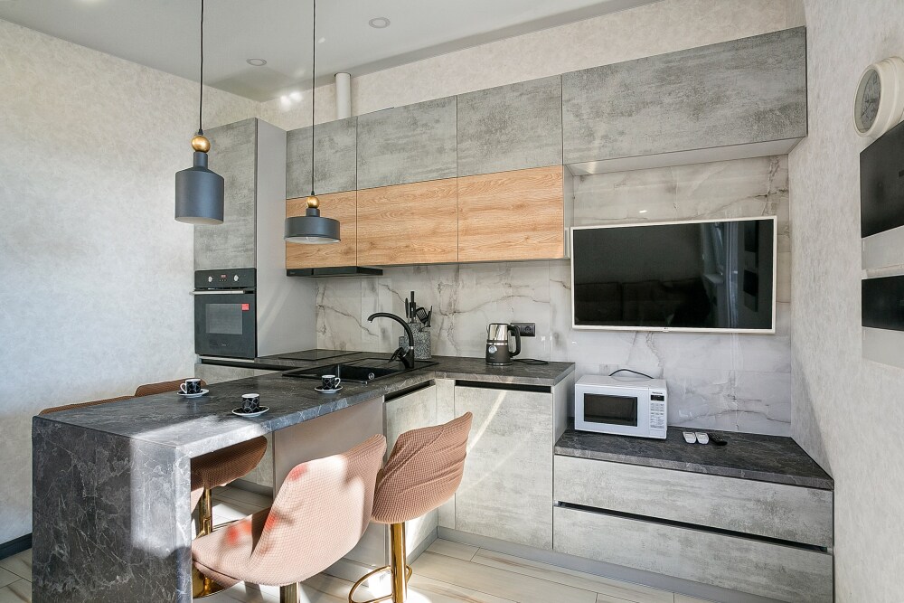 Основные удобства: кондиционер, балкон/лоджия, беспроводной интернет wi-fi, телевизор, электрический чайник, фен, микроволновка, стиральная машина, сушилка для белья, холодильник, кухня-гостиная, духовка, микроволновка, столовые приборы, посудомоечная машина, электрический чайник, холодильник, обеденный стол, мультиварка, индукционная плита, пылесос, утюг с гладильной доской.