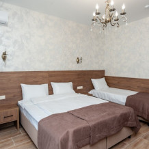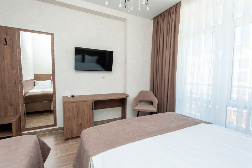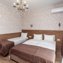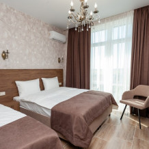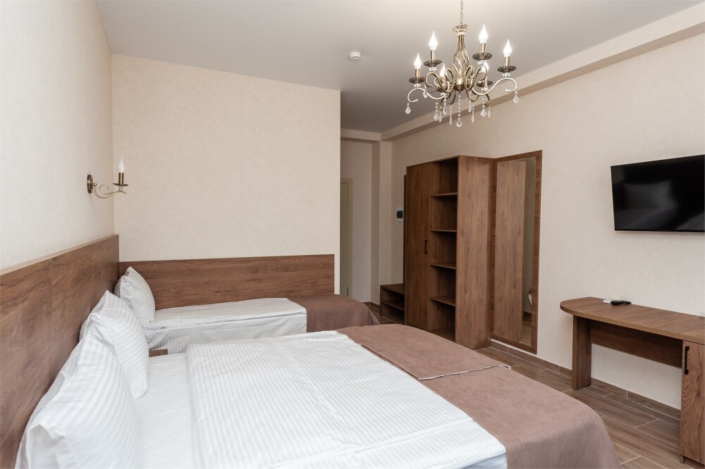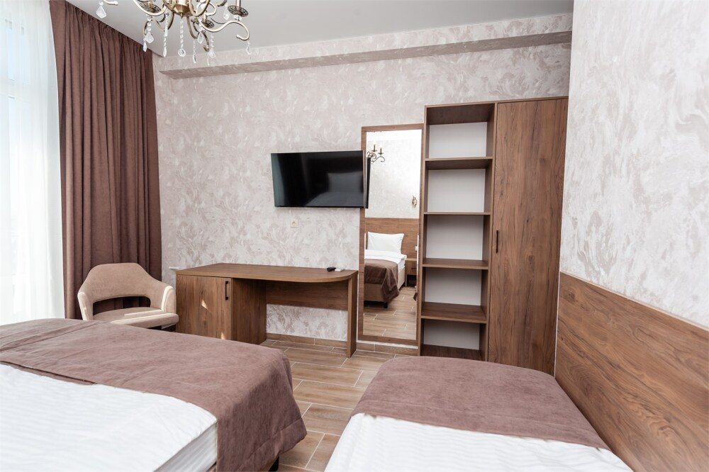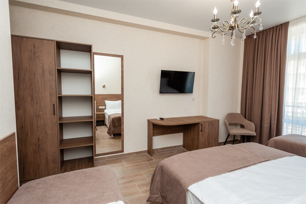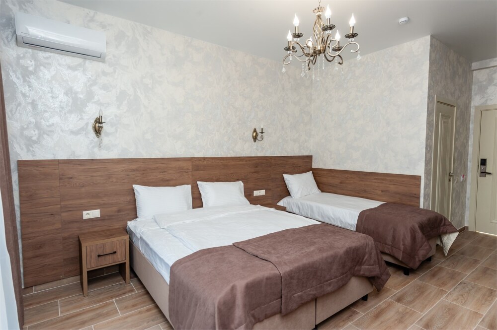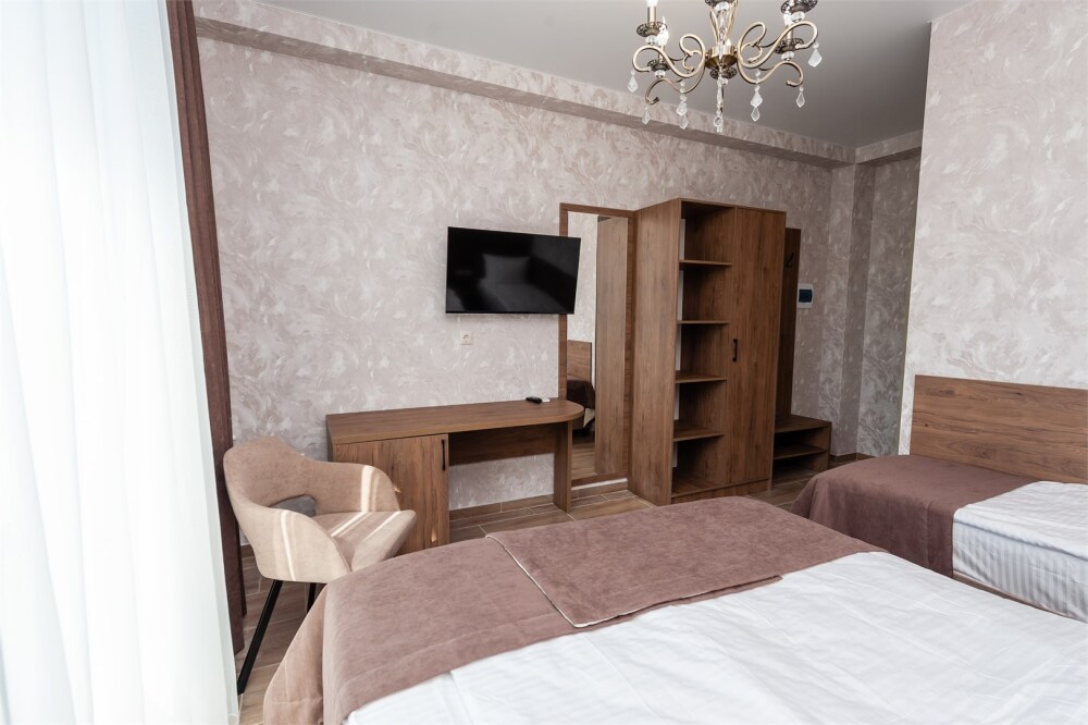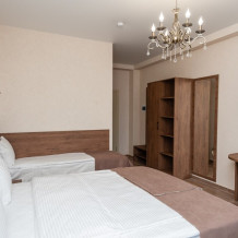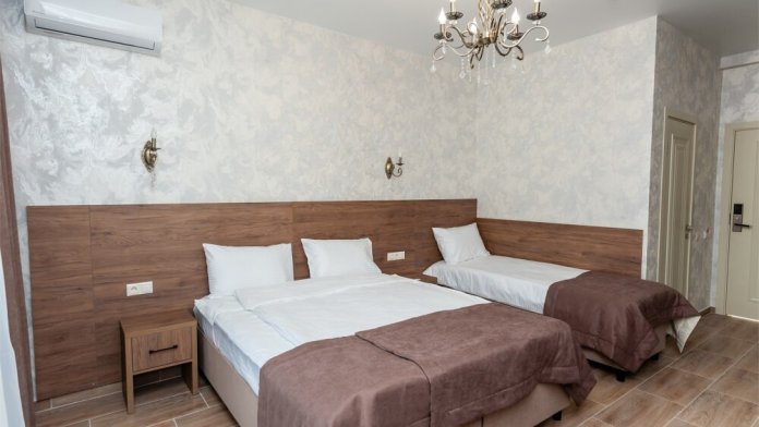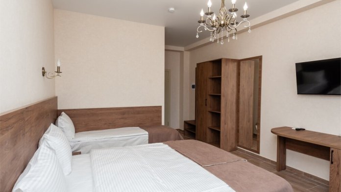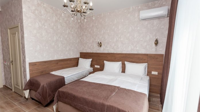 Номера расположены на первом, втором и третьем этажах. Все номера оборудованы: кондиционерами, телевизорами (кабельное тв), холодильниками, удобной и современной мебель.