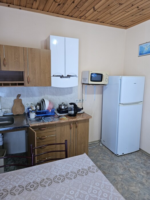 Номера состоят из двух двухместных спален, санузла и кухни. Имеются телевизоры, кондиционеры, WI-FI. На кухне холодильник, электроплита, все необходимое для приготовления и приема пищи. Постельное белье предоставляется кроме пляжных полотенец.
