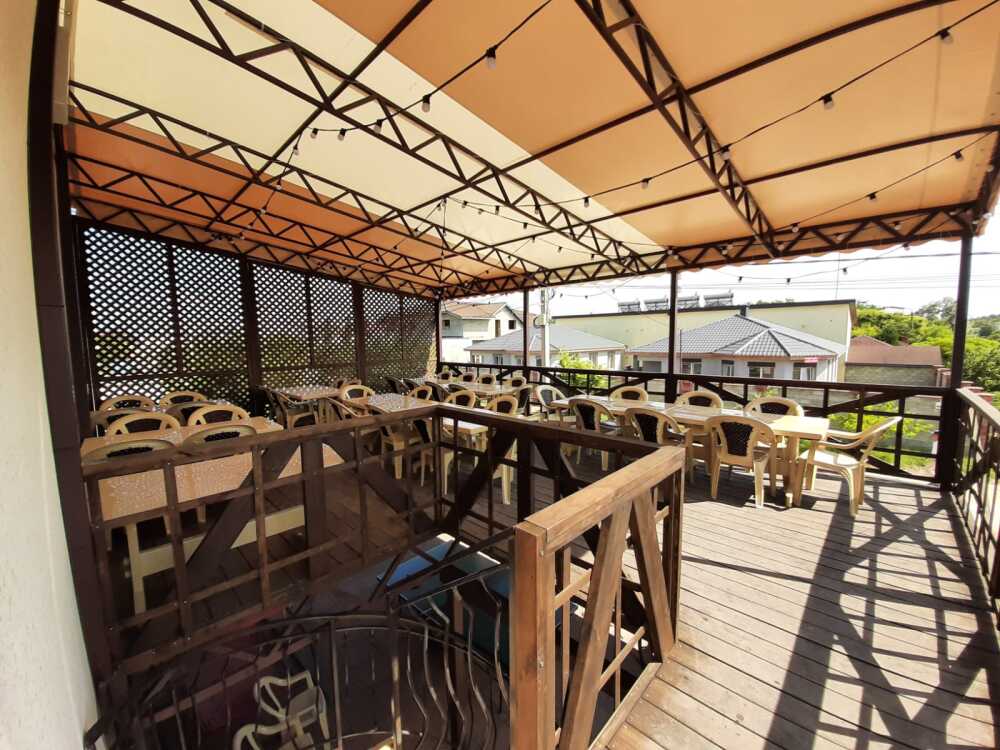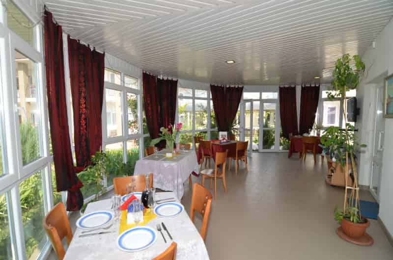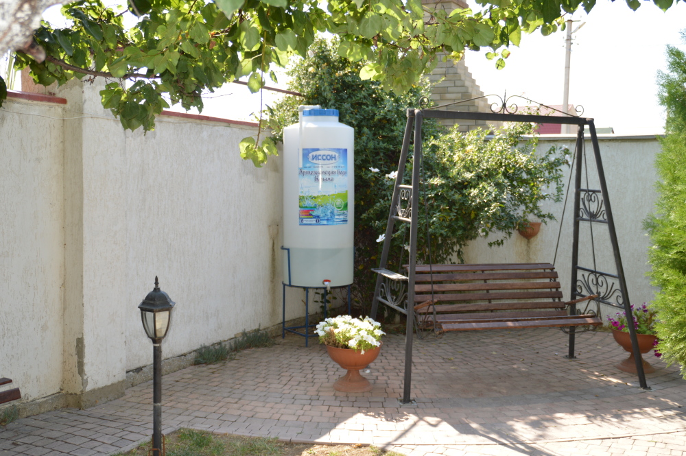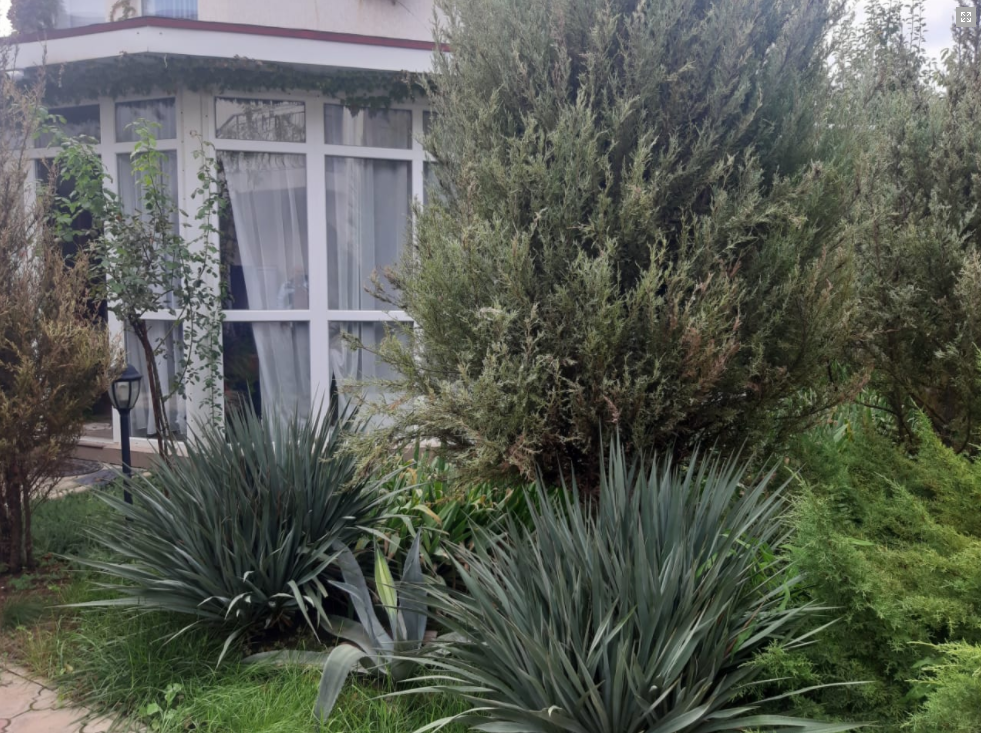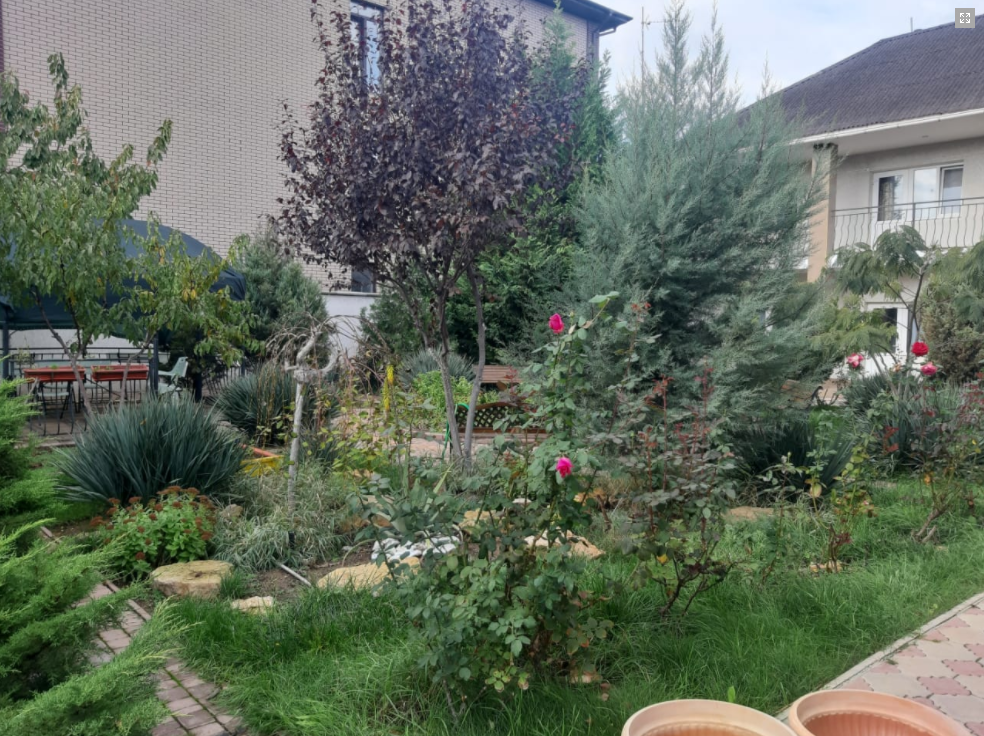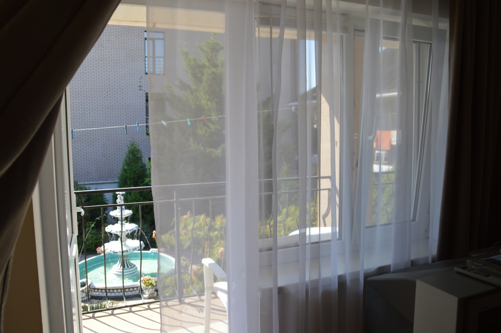 Территория гостевого дома закрыта для посторонних. Внутренний двор радует глаз свежим зеленым газоном, яркими цветочными клумбами, экзотическими растениями.