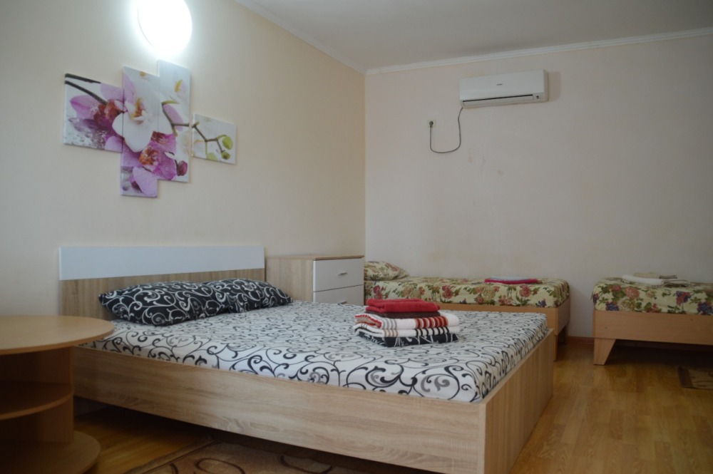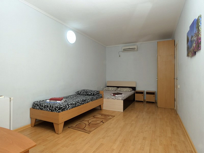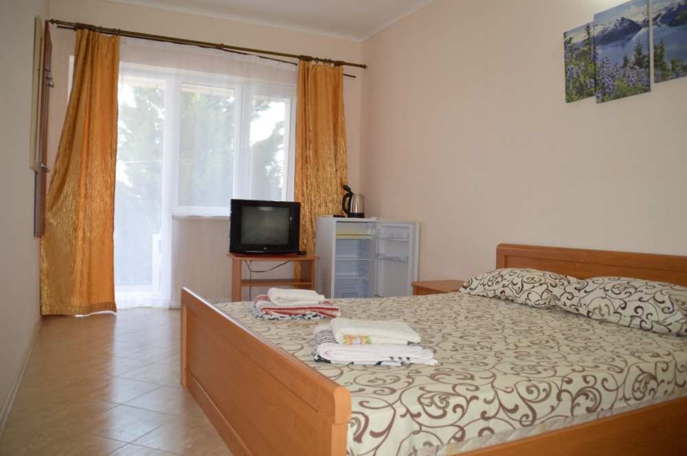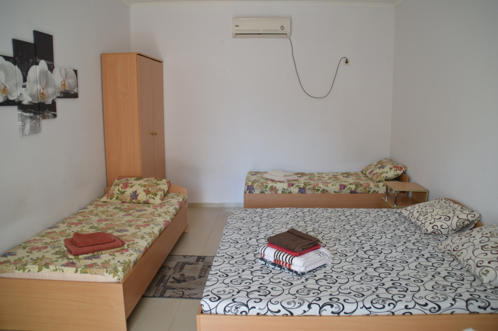 Гостевой дом предоставляет отдыхающим номера для размещения двух, трех, а также четырех человек. Номера оборудованы телевизором, кондиционером, холодильником, чайником. Условия размещения соответствуют современным стандартам качества. Уборка в номере по требованию. Смена полотенец раз в три дня, смена постельного белья раз в пять дней.
