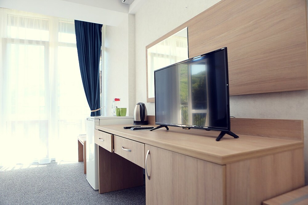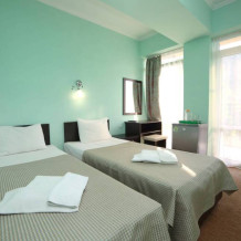 Двухместный номер с балконом и видом на Медведь-гору или на теневую сторону. В номере кондиционер, холодильник, телевизор,wi-fi. Размещение twin или double. Один ребёнок до 7 лет — можно без отдельного спального