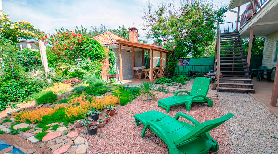 У нас есть, где провести время - смотровая, беседка с барбекю, сауна, два небольших бассейна, детская площадка, стол для настольного тенниса, уютная столовая. На всей территории действует бесплатный Wi-Fi. Есть место, где можно поставить машину. Такие необходимые мелочи, как стиральная машина, гладильная доска, пляжный зонт, коврик и маски-трубки - все это в распоряжении наших гостей. Мы будем через день убирать в вашем номере и 1 раз в 5 дней менять постельное белье и полотенца.