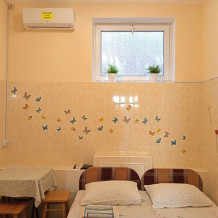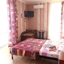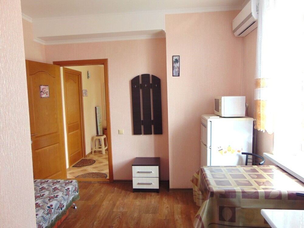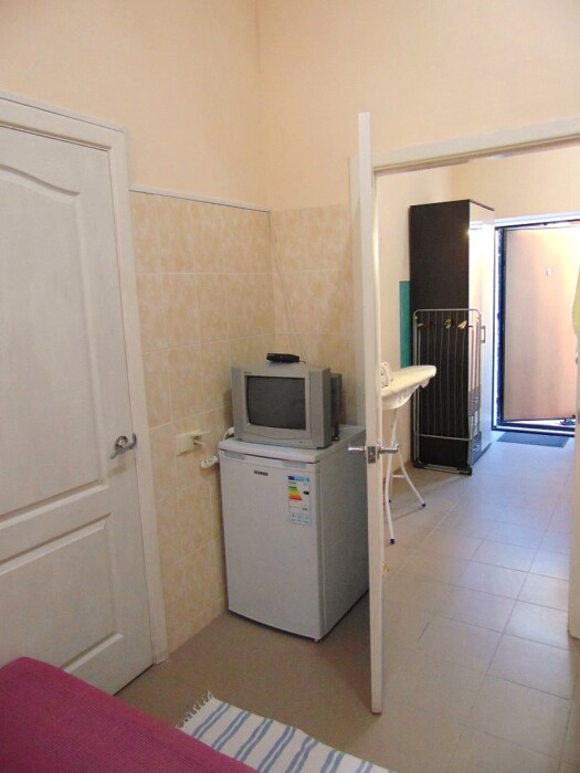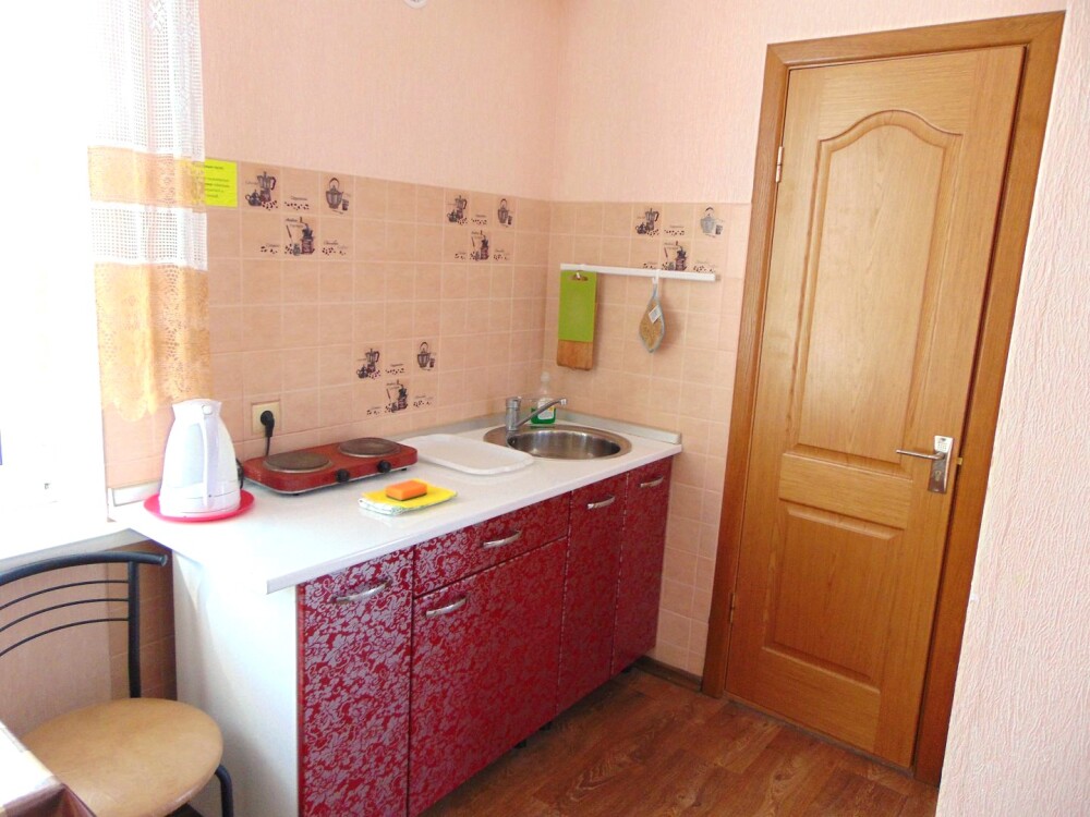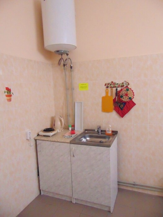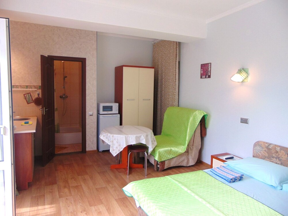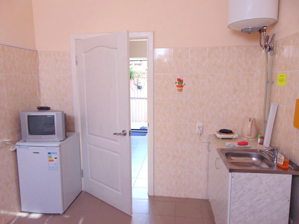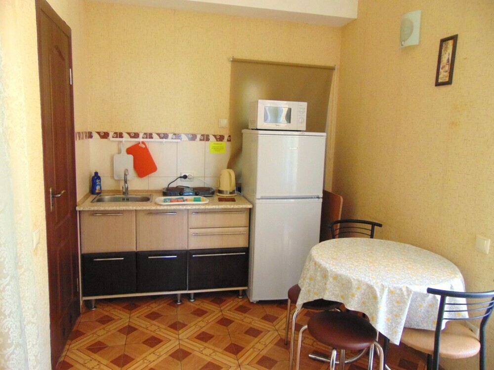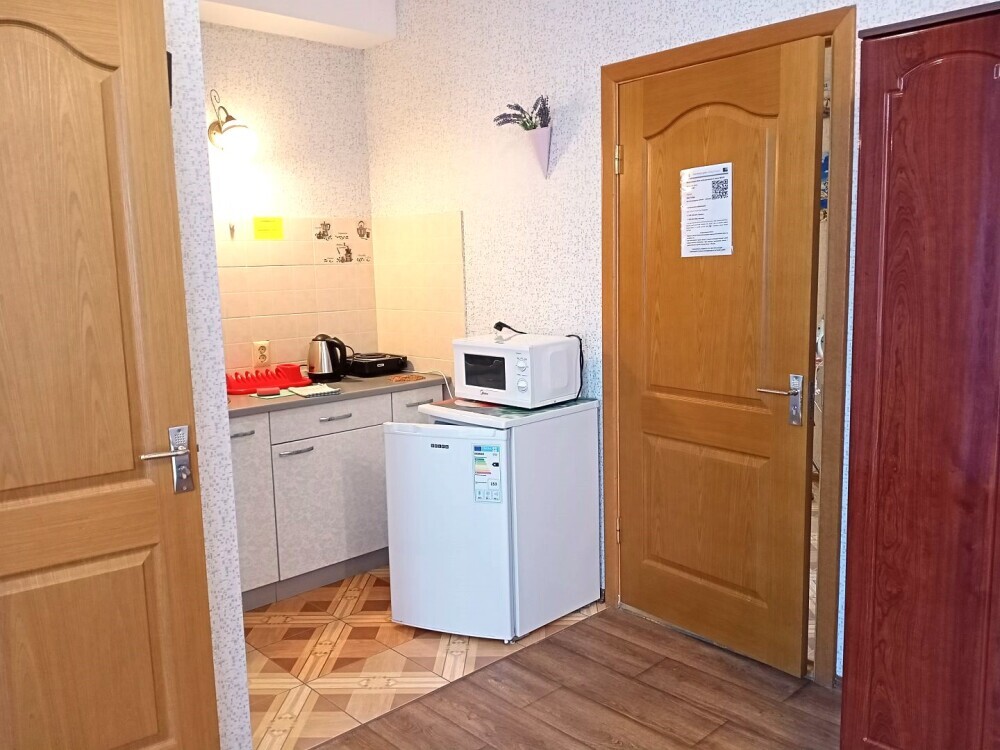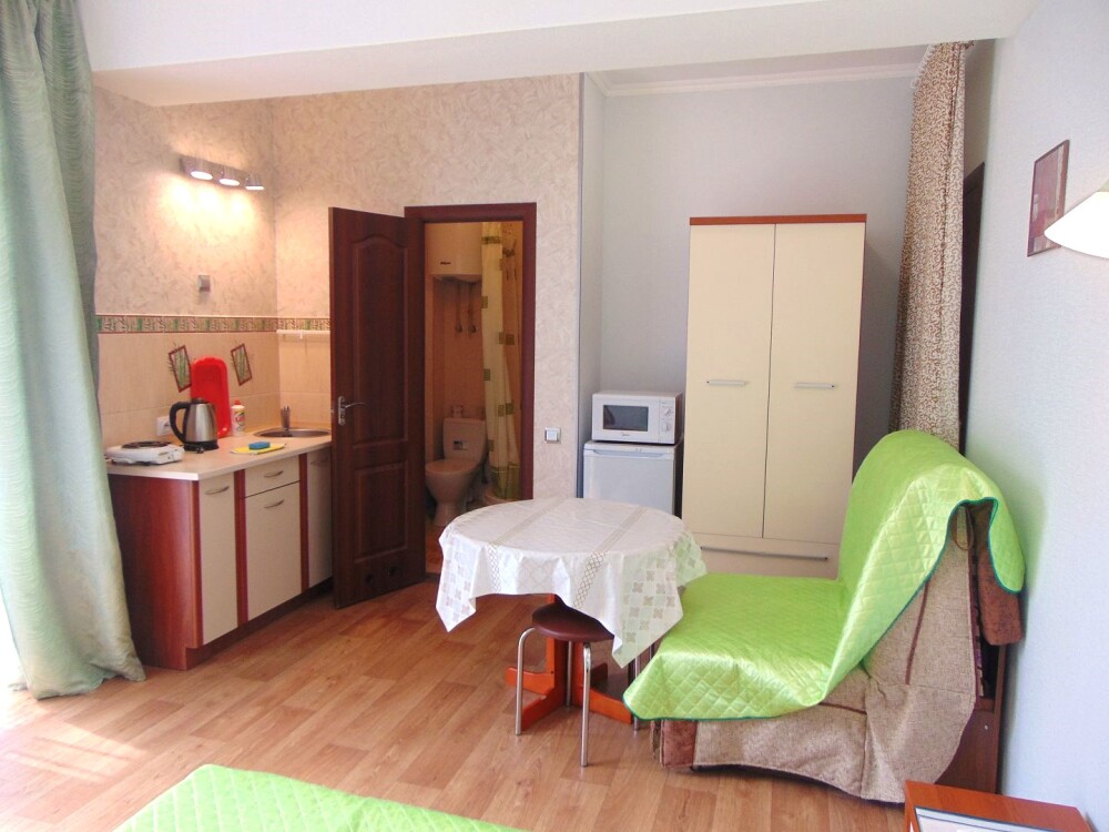 Во всех апартаментах имеется кухня или кухонная зона с набором посуды, эл. чайник, эл. плитка, ТВ, кондиционер, Wi-Fi, холодильник. Индивидуальный санузел с душем и феном.