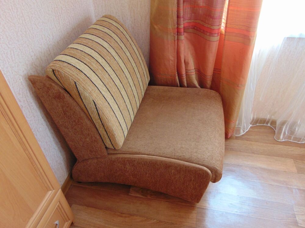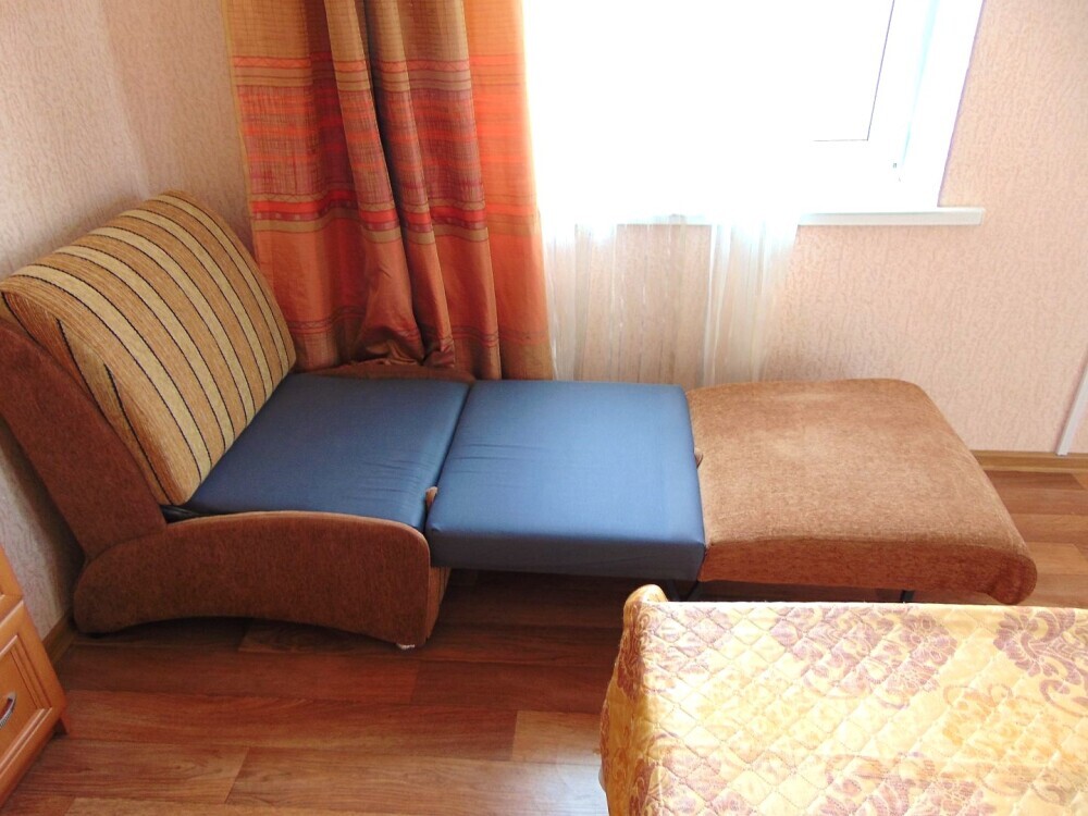 Просторная двуспальная кровать (160 см) + удобное кресло-кровать (90 см).