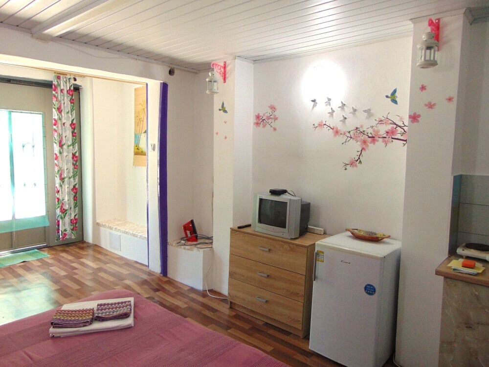 Во всех апартаментах имеется кухня или кухонная зона с набором посуды, эл. чайник, эл. плитка, ТВ, кондиционер, Wi-Fi, холодильник. Индивидуальный санузел с душем и феном.